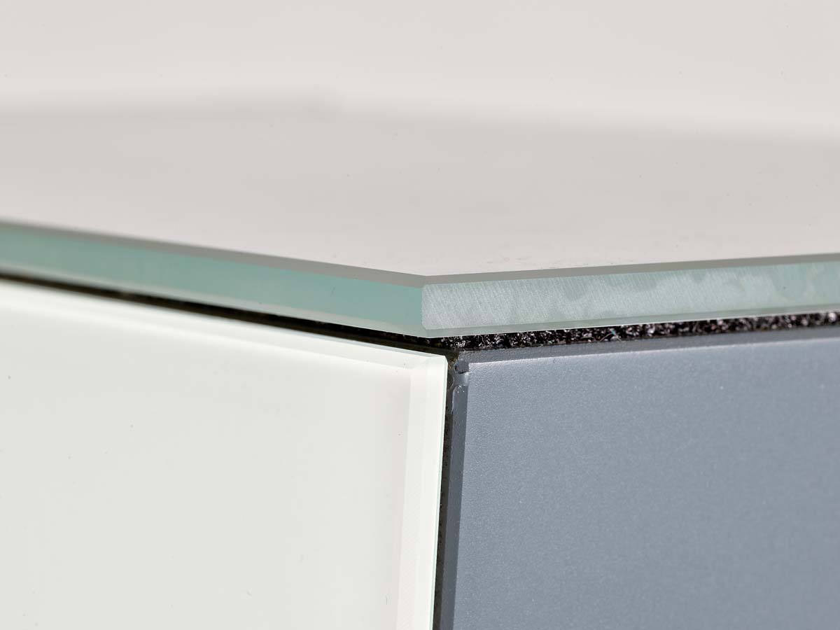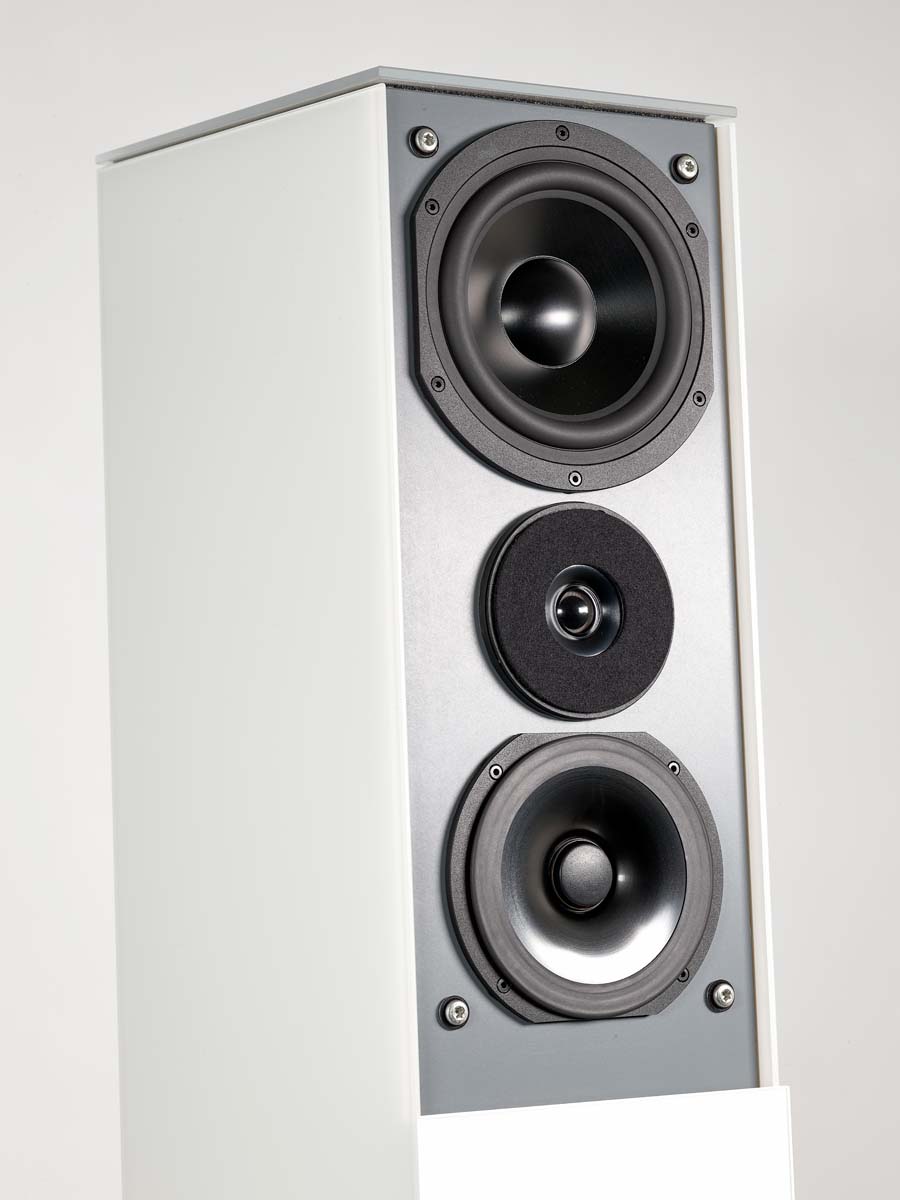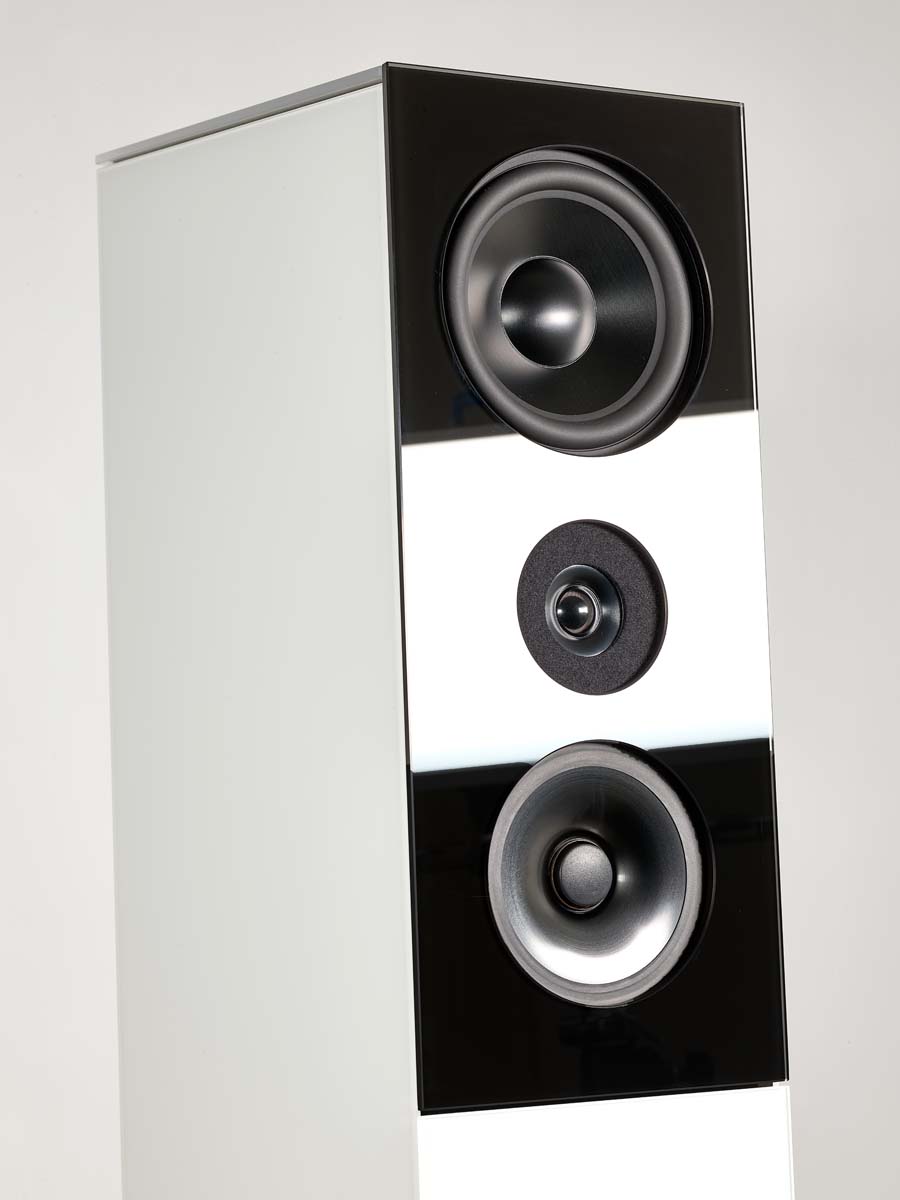 Aber keine Sorge: Klingeln oder Klirren muss man hier absolut nicht befürchten, denn die mit dauerelastischen Klebestreifen an einem Innenkorpus aus MDF befestigen Glaspaneele bezwecken tatsächlich das genaue Gegenteil dessen, was man befürchten könnte: Die elastische Verbindung zweier Materialien mit völlig unterschiedlichen Resonanzeigenschaften führt nämlich dazu, dass sich Vibrationen der MDF-Platten im Spalt zwischen den Materialien totlaufen, ohne das Außengehäuse zum Schwingen anzuregen. Der Korpus bleibt somit auch bei hohen Pegeln stets mucksmäuschenstill, und es ist definitiv nur das zu hören, was die Treiber von sich geben.