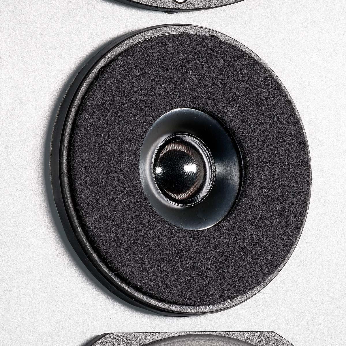 Und das wohlverdient, hat es doch technologisch so manches Ass im Ärmel. Dank seiner speziellen Sickenkonstruktion kommt es beispielsweise völlig ohne Zentrierspinne aus, wodurch sich der Aufbau hinter der Aluminiummembran wesentlich strömungsgünstiger gestaltet, was wiederum Kompressionseffekten vorbeugt. Gleichzeitig erlaubt es das Verschwinden der Spinne, das Magnetsystem von seinem üblichen Platz hinter dem Chassiskorb in dessen Inneres zu verlagern, was in einem wesentlich kompakteren Treiber resultiert. Und wo wir beim Chassiskorb sind: Der ist zweiteilig aufgebaut. Ein äußerer Korb aus Aluminiumdruckguss sorgt für Verwindungssteifigkeit bei gleichzeitig strömungsgünstig schmalen Stegen. In diesen ist ein Innenkorb aus akustisch inertem Kunststoff eingesetzt, der die Membran trägt. Die Membranbewegungen werden auf diese Weise vom Metallkorb entkoppelt, sodass Klingelgeräusche im Grunde ausgeschlossen sind.