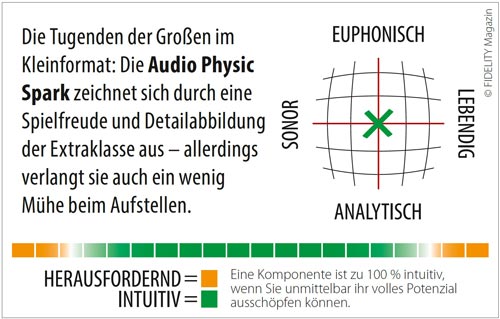 Die Tugenden der Großen im Kleinformat: Die Audio Physic Spark zeichnet sich durch eine Spielfreude und Detailabbildung der Extraklasse aus – allerdings verlangt sie auch ein wenig Mühe beim Aufstellen.