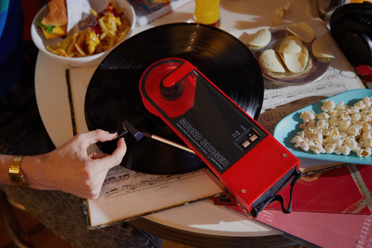 Der modernisierte Sound Burger verfügt über ein Riemenantriebssystem, mit dem sich LPs und Singles mit 33-1/3 und 45 UpM wiedergeben lassen. Für den portablen Einsatz wie beim originalen Sound Burger sorgt ein dynamisches Balance-System, bei dem der Auflagedruck der Nadel über eine Feder reguliert wird, sowie ein Gleichstrommotor, der eine reibungslose Wiedergabe sicherstellt.