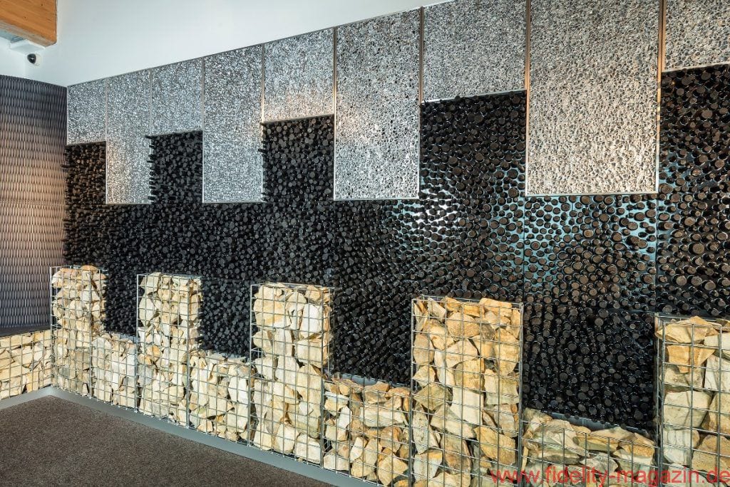 Genuß: das heißt, Schallplatten oder CDs hören, ein regionales Menü erleben, sich mit Gleichgesinnten austauschen, Erholung pur spüren. Und Natur pur wie die Akustikpanels im Hörraum: Eiche-Spaltholz aus heimischen Wäldern, kunstvoll „zerlegte“ Weinfässer aus den Weinkellern der Region, Moos oder Baumrinde – diese und weitere Materialien bieten die perfekte akustische Optimierung von Räumen.