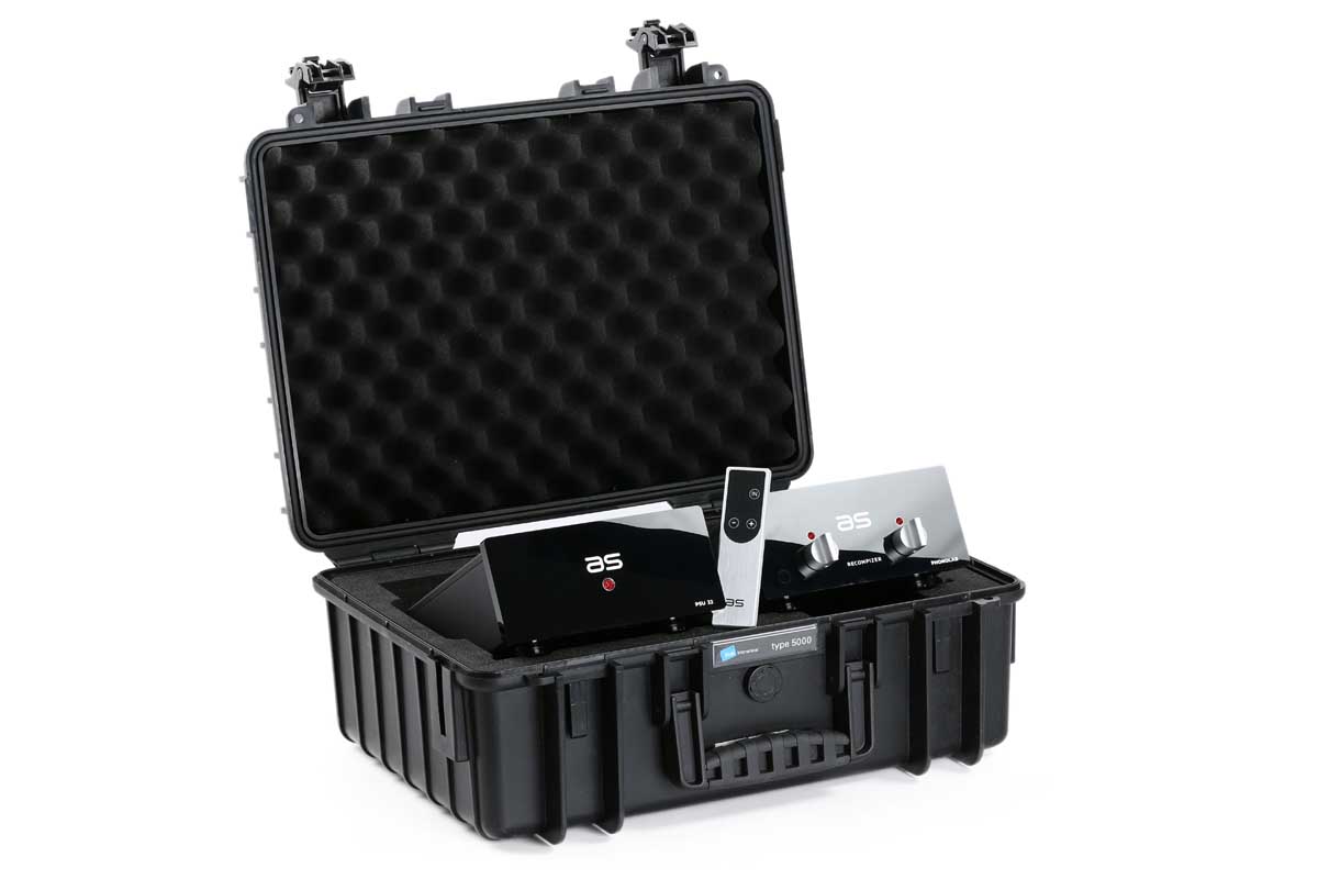 Auflösung der Irritation: Der superstabile Koffer stammt vom deutschen Outdoor-Gepäckspezialisten B&W International. Eine bevorzugte Marke professioneller Fotografen, nicht verwandt oder verschwägert mit den bekannten Lautsprechern aus England. Und ein handfester Hinweis auf den Mann, der für den Inhalt des Koffers – tatsächlich der erwartete Phonolab 1.0 von Audiospecials – verantwortlich ist. Michael Fehlauer ist seit Jahrzehnten mit seiner professionellen Fotoausrüstung in Tonstudios, Konzertsälen und anderen Werkstätten des guten Klangs unterwegs. Ein audiophiler Fotograf mit schwerem Hang zur Schallplatte also, das soll unter Feinmechanikfreunden ja öfter vorkommen.