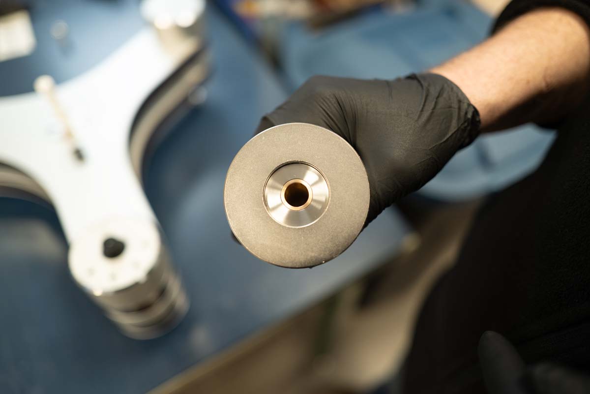 Was also kann man – außer „Fallstudien“ – überhaupt falsch machen? Nun, durch zu wenig Öl oder die Verwendung einer ungeeigneten Sorte entstehen fast zwangsläufig Schäden am Lager. Unabhängig davon, ob es sich dabei um ein klassisches Lager mit Kugel oder ein Magnetlager handelt. Letztere schweben in der Laufwerkskonstruktion und werden lediglich vertikal mittels einer keramischen Achse geführt. Im Grunde sollte jährlich ein Ölwechsel durchgeführt werden, je nach Nutzung und Umgebung, so wurde es mir erklärt. Hörräume, in denen geraucht wird oder in denen sich eine Feuerstelle befindet, erzeugen zwangsläufig Ablagerungen im Lageröl. Auf meine Frage, wie viel Öl genommen werden muss, gab es eine klare Aussage: „Bitte nicht zu viel!“ Bei meinem Keramiklager sollte lediglich genug Öl in die abnehmbare Sinterbronze laufen, bis diese leicht benetzt ist. Clearaudio verwendet für alle Laufwerke das gleiche Schmiermittel, ein vollsynthetisches Industrieöl mit hoher Viskosität. Für andere Öle oder gar Fette übernimmt der Hersteller keine Garantie. Es gibt einen Trick, um zu prüfen, wie gut das Schmiermittel noch ist. Man nimmt den Riemen ab und gibt dem Teller einen leichten Schubs. Wenn dieser dann noch ein, zwei Minuten läuft, ist alles gut. Wenn nicht – dann ist es Zeit für einen Wechsel.