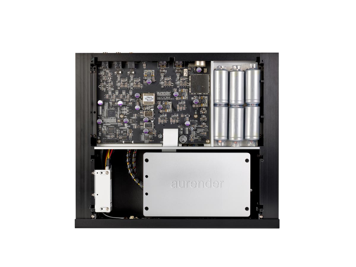 Wie es sich heutzutage gehört, verfügt der W20 außerdem über eine für Audiosignale optimierte USB-Schnittstelle. Die ist auf geringstmögliche Störanfälligkeit optimiert und soll im Gegensatz zu den Rechner-Ports ein Musterbeispiel an Elektroschmutzfreiheit sein. Prima ist jedenfalls, dass sich über die Aurender App – dazu gleich mehr – die USB-Stromversorgung optional abschalten lässt: Wer einen USB-DAC mit eigener Stromversorgung besitzt, kann so potenzielle Störenfriede der Leitung verweisen. Selbstverständlich wird der USB-DAC im asynchronen Modus bedient, der Aurender-Aufwand in puncto Jitter-Eliminierung ist indes in dieser Betriebsart zweitrangig, denn asynchrone Wandler generieren ihren eigenen Takt, das Signal wird stets reclockt. Da der W20 aber mit den allerbesten Wandlern zusammenarbeiten soll und kann, ist seine aufwendige OCXO-Clock sinnvoll implementiert.