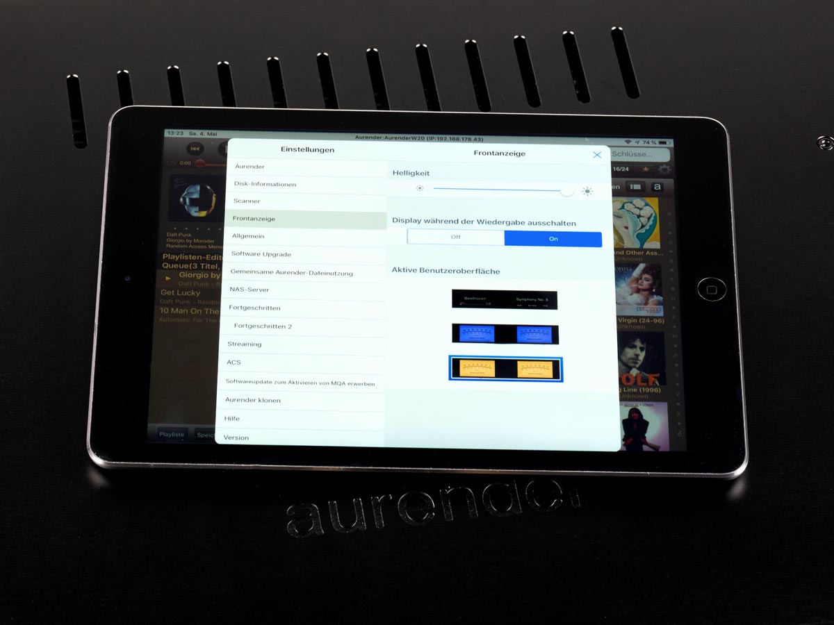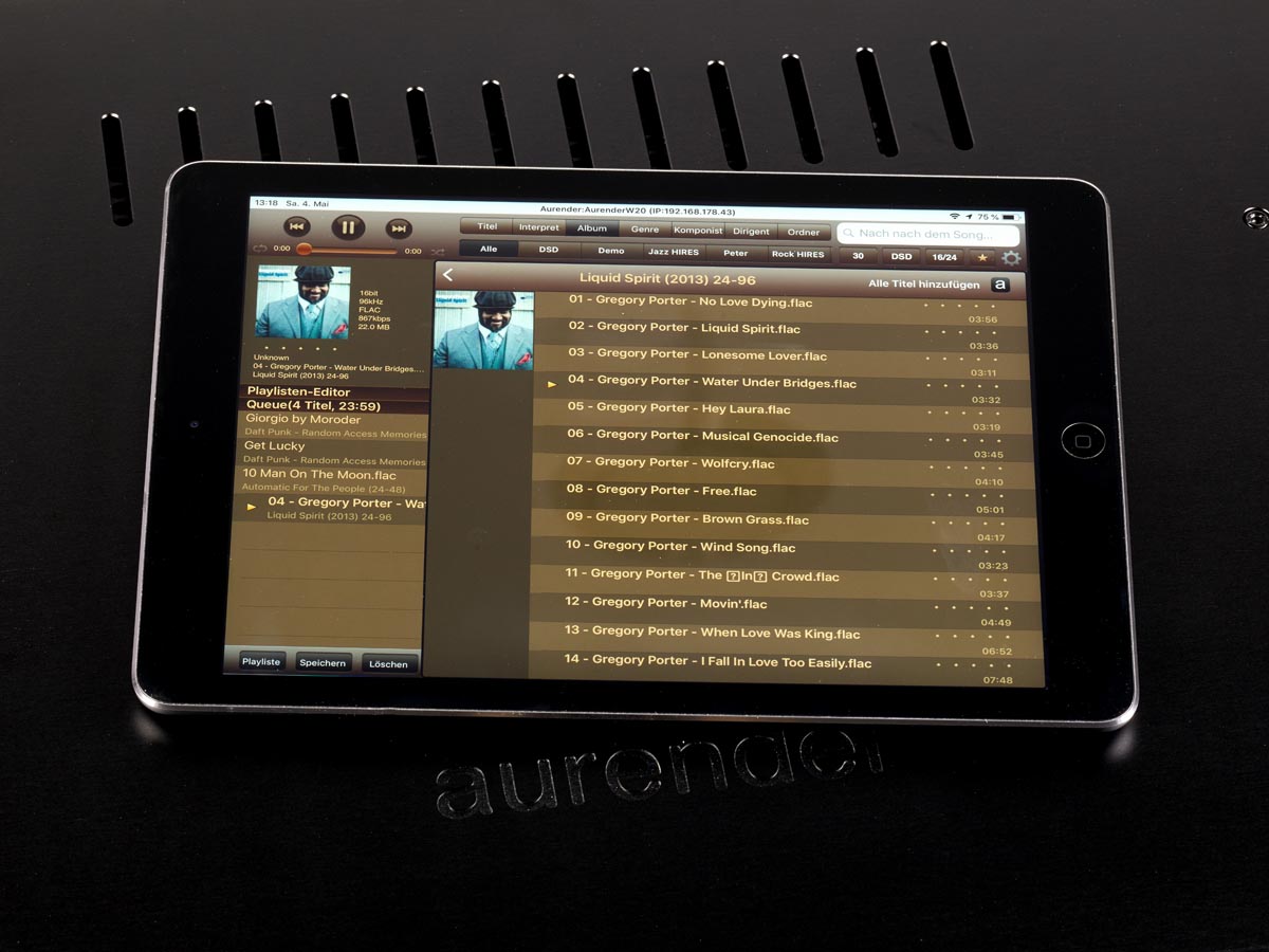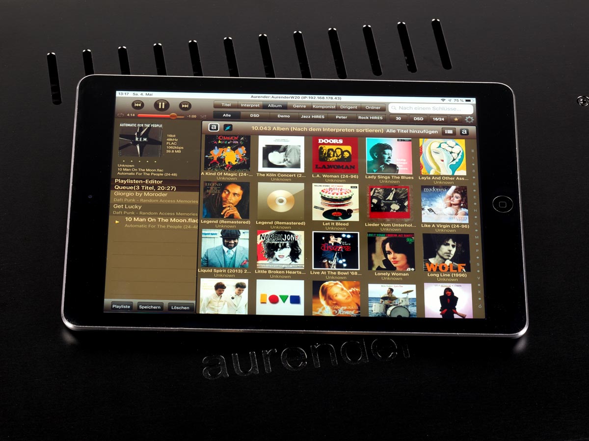 Kommen wir zur Bedienung des W20. Auch wenn es nicht jedem passt: Aktuelle Musikserver benötigen ein mobiles Endgerät und eine Steuersoftware. Die Aurender-App ist kostenlos, in der iOS-Version inzwischen sehr ausgereift und durchaus komfortabel. Seit kurzem existiert auch eine Android-Version, die noch nicht ganz auf dem Niveau des Schwesterprogramms arbeitet, aber grundsätzlich zufriedenstellend ist. Wer einen jungfräulichen W20 spielbereit machen, also mit Musik füttern will, braucht die App zwingend. Nur sie verrät dem Benutzer Benutzername und Passwort für den Zugang, sodass der Datenspeicher via Netzwerk und Drag & Drop mit Dateien versorgt werden kann. Einmal eingerichtet, wird das Musikhören zu einer angenehme Angelegenheit – wenn der Anwender damit leben kann, dass ein Album oder ein Einzeltitel immer als Playlist angelegt werden muss. Das ergibt sich zwingend aus der beschriebenen Funktionsweise des W20, ist gleichwohl zumindest nicht nach meinem LP-/CD-Hörer-Geschmack. Aber am Ende ist alles nur Gewohnheitssache, und nun ist es Zeit, dem Boliden zuzuhören. Denn wir wollen doch wissen, ob er tatsächlich um ein Vielfaches besser als andere Lösungen und Mitbewerber klingt.