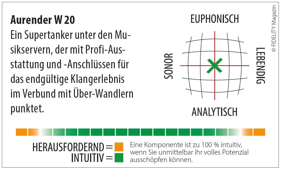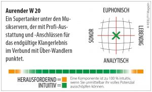 Der W20 vom Server-Spezialisten Aurender, dessen Flotte er als Flaggschiff anführt, ist ein Supertanker unter den Musikservern. Er will den digitalisierten Musikenthusiasten mit jeder Menge Wohlklangfracht versorgen – ohne Kompromisse.