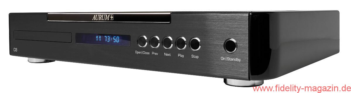 Der Referenz-CD-Player Aurum C8 wartet ebenfalls mit innovativer Technologie auf. Ein permanenter automatischer Abgleich der Lasereinheit garantiert eine CD-Wiedergabe mit höchster Präzision auch nach Jahren. Fokus, Tracking und EF-Balance des Digitalteils werden dabei stets geprüft und perfekt justiert. Herzstück der digitalen Signalverarbeitung ist ein Burr/Brown-D/A-Wandler mit 192 kHz / 24-Bit. Ein Bessel-Filter sorgt für optimale Impulsübertragung und somit bestes Klangverhalten. Höchste Genauigkeit bei der Taktung ist oberste Maxime und wird durch einen Masterclock-Generator perfektioniert.