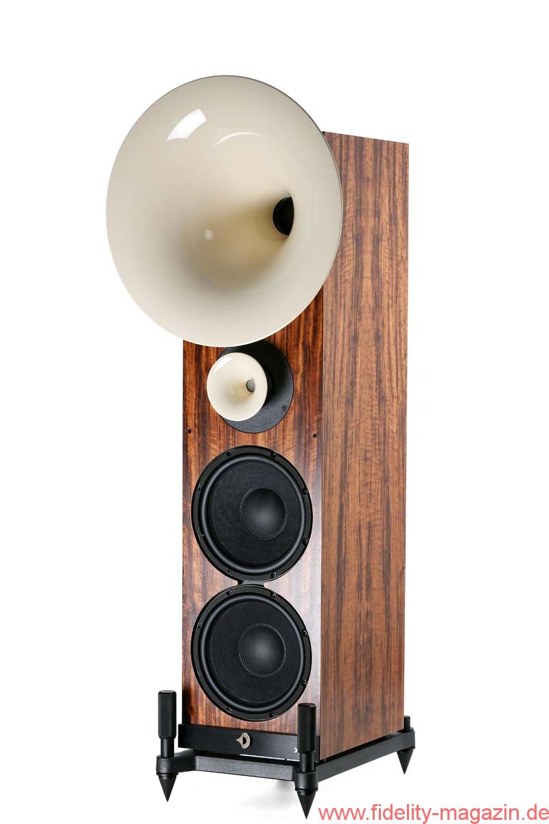 Geht es um große Hornlautsprecher, ist die Assoziation einer besonders dynamischen Wiedergabe nicht weit. Um kurze Signalspitzen, die in der Musik die Dynamik ausmachen, umkomprimiert wiederzugeben, sind Lautsprecher mit einer hohen Sensitivity und auch entsprechende Verstärkerleistungen erforderlich. Möchte man in 4 m Abstand einen typischen Mittlungspegel von 85 dBA erreichen, dann liegen die Spitzenpegel bereits in einer Größenordnung von 100 dB und mehr. Bezieht man den Wert auf eine Entfernung von 1 m, dann sind das schon 112 dB. Für einen Lautsprecher mit einer Sensitivity von 100 dB wird dafür eine Verstärkerleistung von knappen 20 W benötigt, die auch von Röhrenendstufen locker aufgebracht werden. Hat der Lautsprecher jedoch eine eher HiFi-typische Sensitivity von 85 dB 1 W/1 m, so liegt die dafür notwendige Verstärkerleistung schon bei 500 W. Der eine oder andere Verstärker muss da bereits passen – und der Lautsprecher selbst unter Umständen auch.