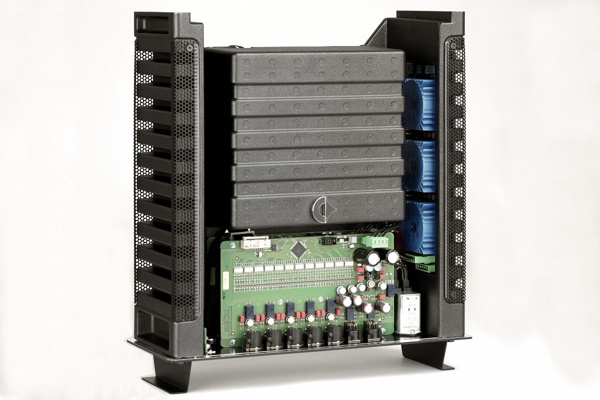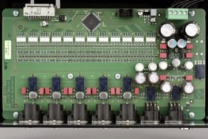 Als echter Clou muss die Energieversorgung des Vorverstärkers gelten, die so konsequent wie nur irgend möglich ausgeführt ist: Es handelt sich nämlich um ein Akku-Netzteil, womit reinste Gleichspannung zur Verfügung steht. Die Akkus hausen in einem Separee in dem großen Gusskörper des Innengehäuses, daneben sitzen drei Netztrafos, von denen einer ausschließlich für periphere Schaltungen und „Management“-Maßnahmen zuständig ist; eine Akku-Versorgung verlangt ja nach entsprechenden Lade- und Überwachungsschaltungen. Übrigens läuft der Avantgarde-Pre wahlweise „pur“ aus den Akkus oder ausschließlich mithilfe des Netzteils – damit ist der klangliche Unterschied durchaus nachvollziehbar. Dass sich die Akku-Versorgung letztlich auch auf den Störspannungsabstand positiv auswirkt, leuchtet ein. Beide Komponenten, also Vor- und Endverstärker, können mit Ehrfurcht gebietendem „Signal-to-noise“ aufwarten, was angesichts der höchst effizienten Hornlautsprecher von Avantgarde Acoustic auch notwendig ist.