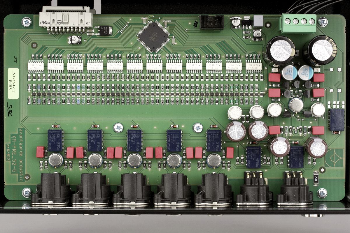 Einer der Gründe für die Materialschlacht lässt sich sofort diagnostizieren. Es sind nämlich die Gehäuse der Avantgarde-Acoustic-Kombi, die derart auf die Waage drücken, nein, in Wirklichkeit sind es pro Gerät sogar gleich zwei schwarze, massive sogenannte „Unibody“-Aluminium-Gusskabinette mit Kühlkörper, die je ein Außen- und ein Innengehäuse bilden. Und damit rund 28 Kilogramm am Gesamtgewicht eines Gerätes ausmachen. Eine absolut konsequente, extrem aufwendige Lösung für gleich mehrere Aufgabenstellungen: Kühlung, Bedämpfung und wirksame Abschirmung. Matthias Ruff, der Elektronik- und Lautsprecher- Designer von Avantgarde Acoustic, hat damit seine Munition aber noch lange nicht verschossen. Ruff, der in der Vergangenheit immer wieder für Überraschungen gut war, ist ein unkonventioneller Denker. Dafür spricht auch die patentierte „DC-Flow“-Technik beider Geräte, die ein grundsätzliches Problem lösen soll, nämlich jenes der Nulldurchgangsverzerrungen. Einfach ausgedrückt: Das Wechselspannungssignal besteht ja immer aus einer negativen und einer positiven Halbwelle; wird der Nullpunkt passiert, entsteht kurzzeitig ein stromloser Zustand, bei dem Nulldurchgangsverzerrungen entstehen. „DC-Flow“ bedeutet nichts anderes, als dass eine spezielle Schaltungstechnik das Signal mit Gleichstrom „unterlegt“, womit dieser stromlose Zustand vermieden wird. Matthias Ruff schaffte es sogar, diese Technik auch am Lautstärkesteller und an den Eingängen (genauer: am Eingangswahlschalter des Vorverstärkers) anzuwenden. Selbst der ist bereits ziemlich trickreich: Jeder Eingang besitzt seinen eigenen Differenzverstärker aus Dualtransistoren, der nur dann unter Strom gesetzt wird, wenn der entsprechende Eingang gewählt wird. Damit ist kein wie auch immer gearteter Schalter im Signalweg, übliche Umschaltungen sehen im Vergleich dazu ziemlich altbacken aus. Die Schaltungstechnik beider Geräte ist kurz und knackig, alles andere als ein Transistorgrab. Die Vorstufe besitzt einen besonders trickreichen Pegelsteller, der nicht im Signalweg liegt, sondern einen variablen Shuntwiderstand gegen Masse darstellt. Er setzt den Strom in der Lautstärke entsprechend hohe Ausgangsspannung um und wird elektronisch in 48 Stufen zu 1,5-Dezibel-Schritten angesteuert. Über Optokoppler galvanisch abgetrennt, kann zudem die Stromversorgung der steuernden Logikschaltungen die Audio-Stromversorgung nicht beeinflussen. Ein Differenzverstärker mit umschaltbarem Verstärkungsfaktor treibt dann schon kräftige, per Regelung versorgte Ausgangstransistoren, die für die beiden Ausgänge des XA-Pre doppelt vorhanden sind. Durch die so separat gepufferte Ausgangsstufe belastet etwa eine weitere, zusätzlich angesteckte Endstufe nur ihren eigenen, via Koppelkondensator angeschlossenen Ausgang.
