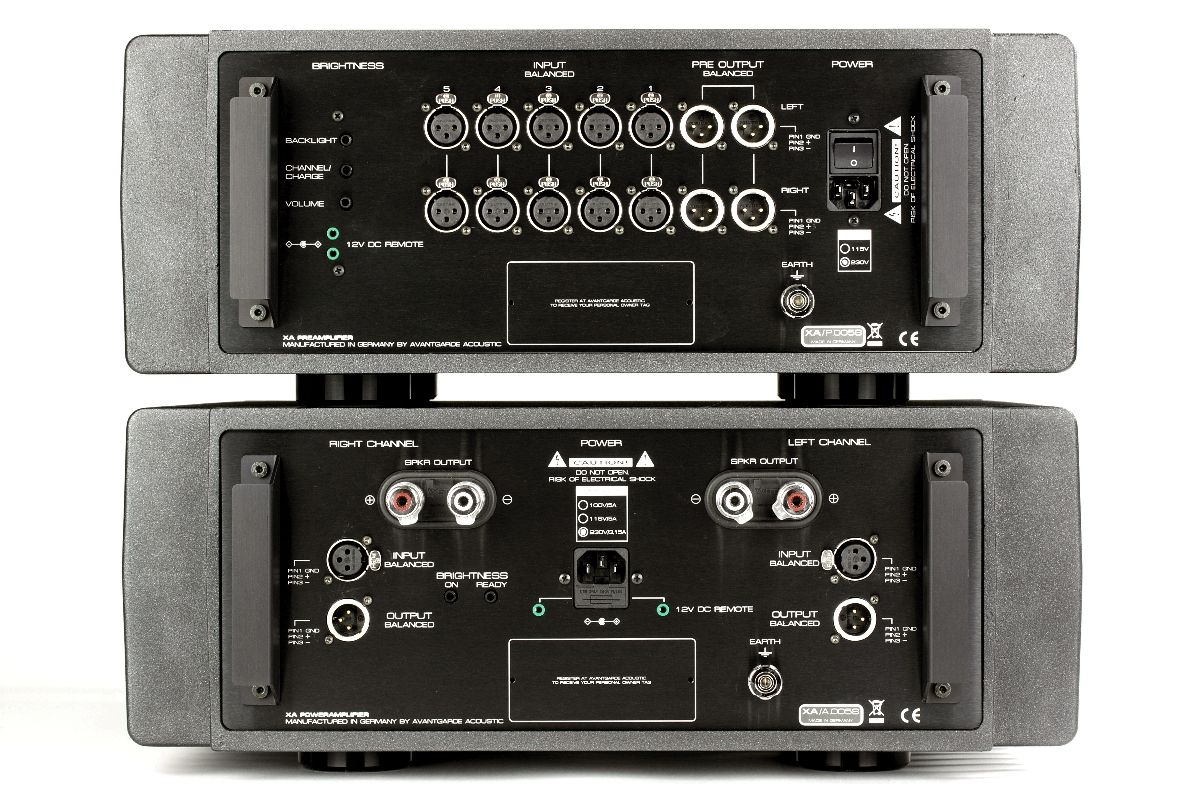 So, und nun noch mal von vorn, in aller Ruhe. Wir sind schließlich zum Musikhören hier. Fakt ist: Außergewöhnliche Elektronik hat Avantgarde Acoustic schon länger im Programm, sie hat bisher aber immer eine Art Schattendasein geführt. Was wiederum nur daran lag, dass die großen bis gigantischen Hornlautsprecher des Unternehmens so herrlich ikonisch und skulpturhaft sind. Mit der XA-Serie hat die hauseigene Elektronik nun ein Gesicht bekommen, das man (vor allem: Mann) nicht so schnell vergisst: muskulös-elegante „Macho- Attitüde“, massive Doppelgehäuse, extragriffige Griffe, ein – Tschuldigung – geiler Pegelsteller, eine Metall-Fernbedienung à la Mag-Lite, die nix kann außer Laut/Leise/Stumm. Klasse! Und dann ist da noch diese vielfältig lackier-, furnier-, einfach wunderbare Front. Die gibt’s übrigens auch in Alu.