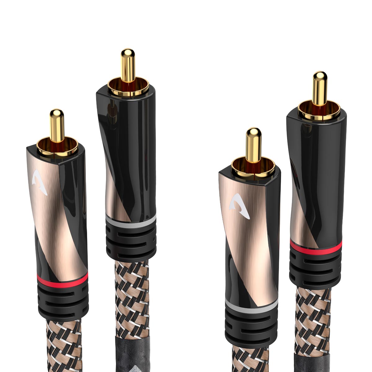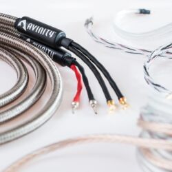 Die aufwendige Isolierung der Reference-Class-Kabel dient freilich nicht dem blanken Selbstzweck. Wie bereits angedeutet legt der Hersteller gehobenen Wert auf praxisgerechte Strippenspiele. Neben typischen Längen von 0,5 oder 1 Meter werden die Signalleiter auch in „Überlängen“ von 2 Meter beim reinen NF-Kabel sowie 5,73 Meter beim Phonokabel mit separatem Erdungsleiter angeboten. Das gibt enorme Freiheit bei der Anlagenplanung und spricht für Avinitys Kenntnis von dem Umstand, dass HiFi-Elektronik immer häufiger von ihrem angestammten Platz zwischen den Lautsprechern weichen muss – das Auge hört eben mit. Damit aber nicht genug: Das Lautsprecherkabel wird mit alternativen Gabelschuhen ausgeliefert, die sich bombenfest mit den Litzen verschrauben lassen, während dem NF-Kabel vier hochwertig vergoldete Winkelstecker beiliegen, die den Anschluss in engen Verhältnissen erleichtern. Außerdem besitzen alle Modelle der Reference Class eine feste Laufrichtung, die auf den Strippen klar erkennbar angezeigt wird.