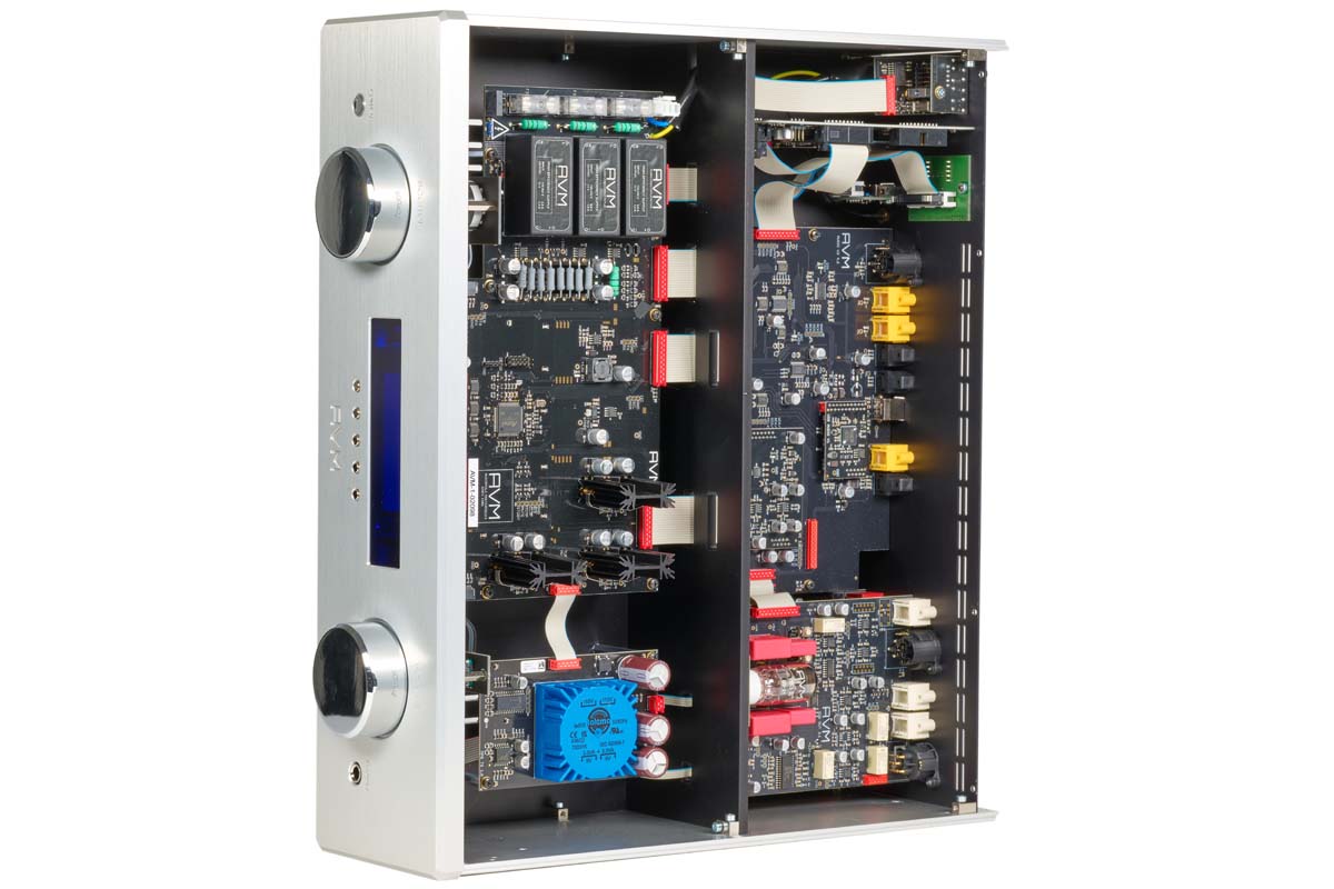 Bei der technischen Umsetzung des firmeneigenen Klangideals indessen lassen sich die Badener nicht in eine Schublade stecken und begegnen althergebrachten und neuen Technologien mit der gleichen Offenheit; Bauteile und Topologien sind hier letztlich nur Mittel zum Zweck. In den Verstärkerstufen der verschiedenen „Meisterstücke“, wie AVM seine Komponenten betitelt, finden sich denn auch rein transistorbasierte Designs ebenso wie solche, die Röhren im Signalweg nutzen. Beim Streaming-Vollverstärker Evolution CS 5.3 etwa machen die Malscher selbst vor der vermeintlich blasphemischen Vereinigung einer Röhrenstufe in der Vorverstärkersektion mit einer Class-D-Endstufenschaltung nicht halt. Die Konstante, die sich durch alle Komponentengenerationen hindurchzieht, soll – optisch wie klanglich – keine starre Designphilosophie, sondern die unverkennbare AVM-Handschrift sein. Der Umgang mit der eigenen Firmentradition scheint sich an Jean Jaurès zu orientieren: „Tradition ist das Hüten des Feuers, nicht das Anbeten der Asche.“