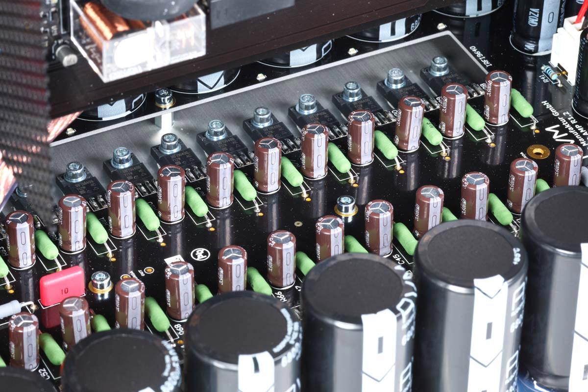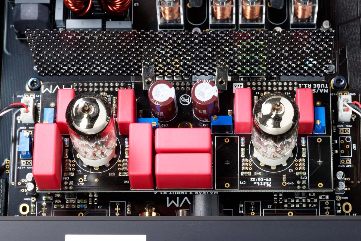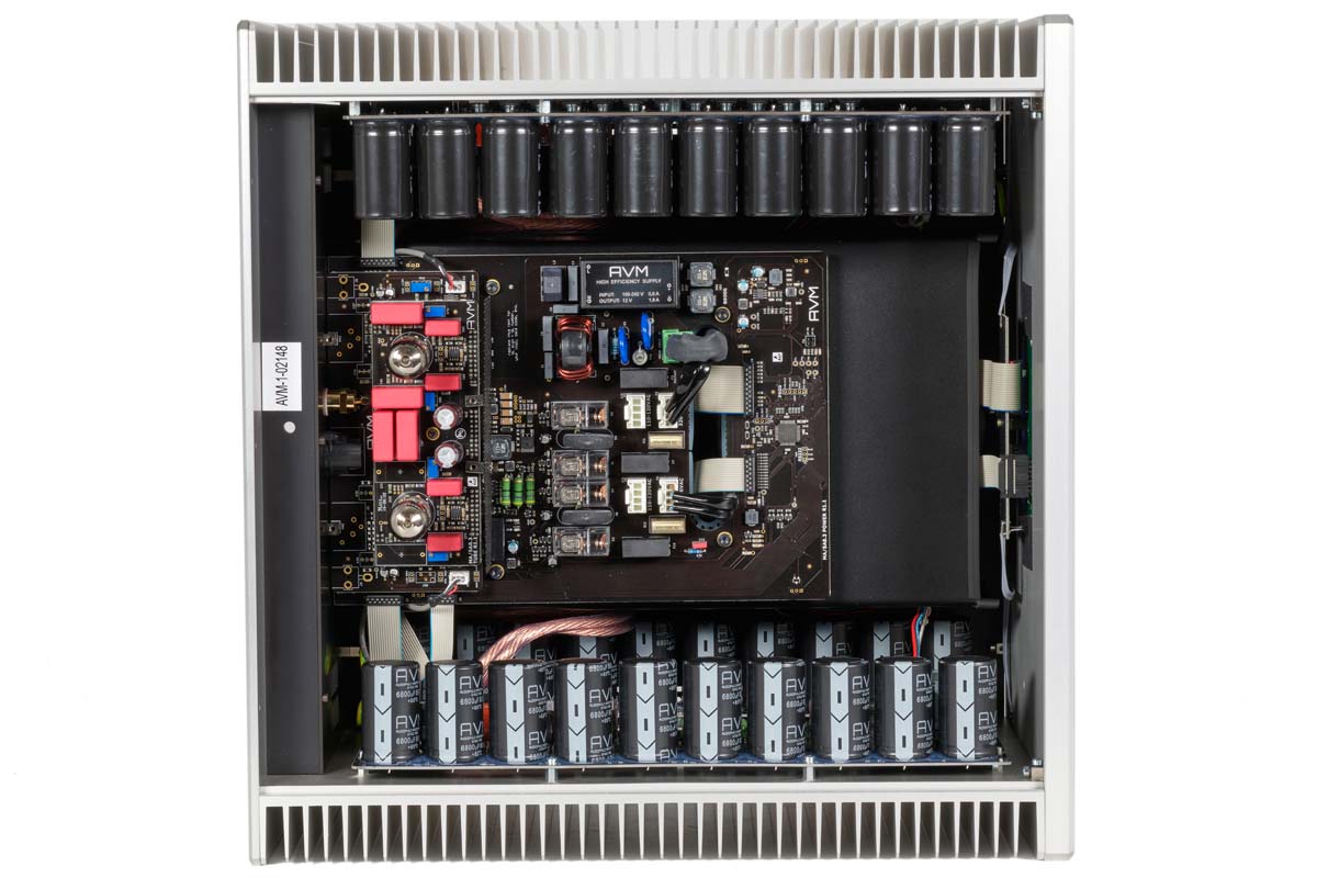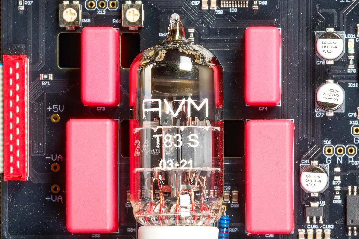 An der Tube Line Stage erkennt man bei AVM im Übrigen die höherrangigen Modelle der jeweiligen Produktlinien. Sie sind das Hauptmerkmal, das etwa einen Evolution CS 5.3 von einem CS 3.3 und eben die Ovation-8.3-Modelle von ihren kleineren 6.3-Geschwistern abhebt. Im Falle der Endstufen erleichtern die Röhren den Entwicklern einen kniffeligen Balanceakt: Die MOSFETs, auf denen die Ausgangsstufe basiert, zeichnen sich neben ihrer röhrenähnlichen Klangsignatur vor allem durch ihre Breitbandigkeit aus, was eine besonders zackige Transientenwiedergabe begünstigt. Dem Prinzip nach ist das natürlich ein Vorteil und auch der Grund für ihren Einsatz. Passt man beim Schaltungsdesign nicht auf, zeigen sich die flinken Dreibeiner allerdings gern von ihrer biestigen Seite und können den Hochton schon mal etwas überzeichnet und unangenehm harsch abbilden. In der Trickkiste des kundigen Schaltungsdesigners finden sich einige Lösungen für dieses Problem, aber der Einsatz von Röhren mit ihrer geschmeidigen Klangcharakteristik ist eine besonders elegante, weil man so an allen Stellen der Topologie mit den einander ausgleichenden Charakteristika der Bauteile arbeiten kann und nicht gegen diese.