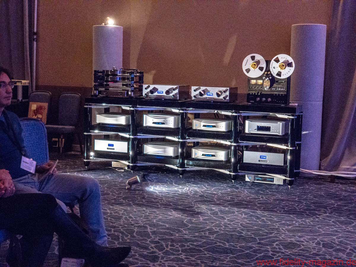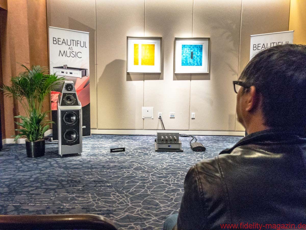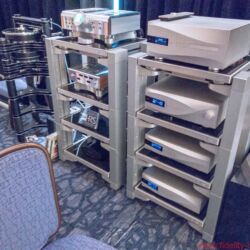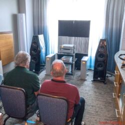 Contrasting the oversized behemoth rooms were the small-ish hotel rooms and suites on the Renaissance side. Given the issues that hotel rooms bring about, from shady power to unfamiliar settings, I was positively surprised at how well some rooms sounded. From Andreas Koch’s latest Playback Designs offer in form of the Dream series MPS-8 and its various iterations, YG’s Carmel speakers driven by Playback Design’s IPS 3 integrate amplifier/DAC combo, the sound was smooth, lively, dynamic and downright gorgeous sounding. Featuring Lynn Stanley in person and on premium digital, both co-hosts managed to elicit excitement, fun and a generally positive vibe. Several times during the show’s many trips up and down the elevators, I heard people comment on how great this room sounded. Well done!