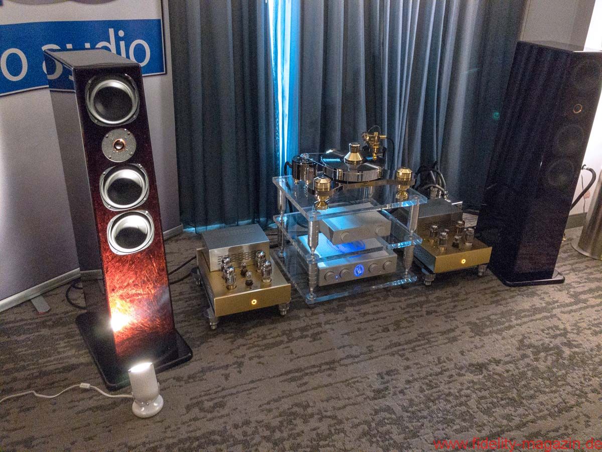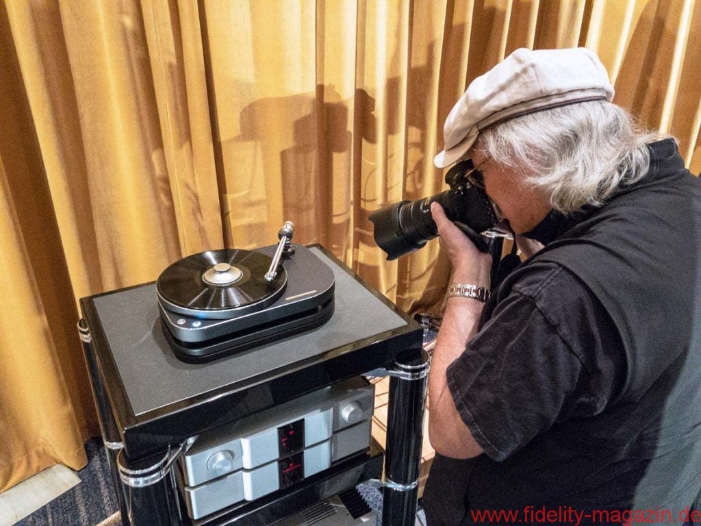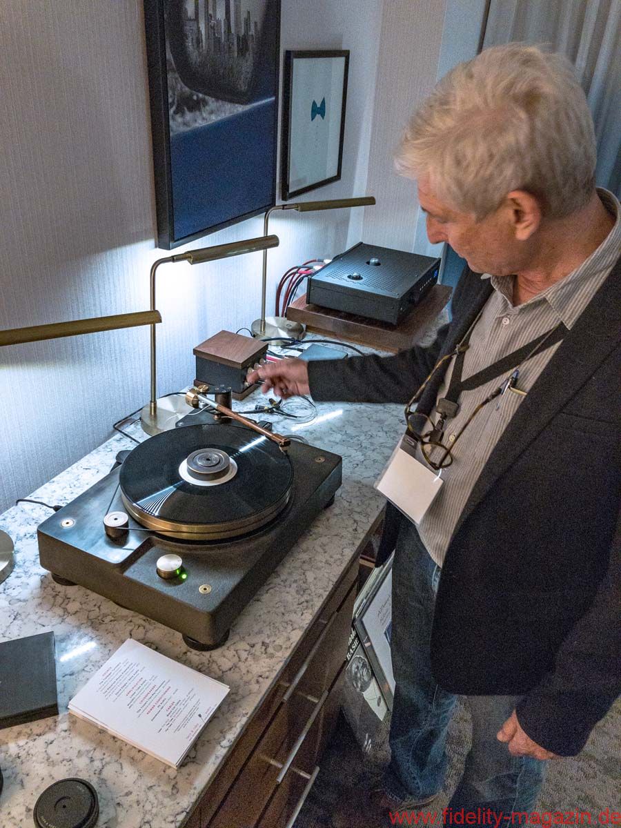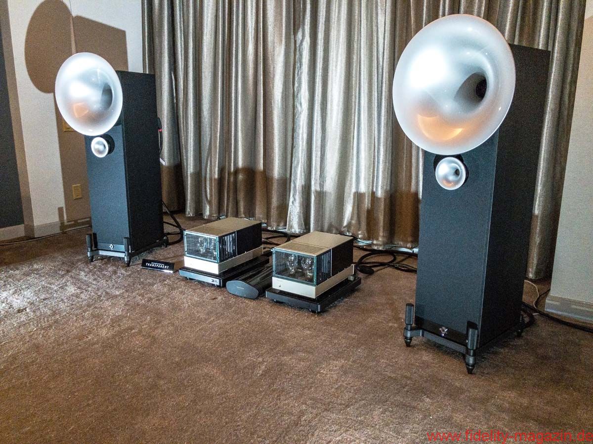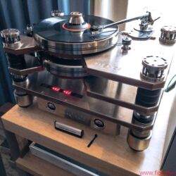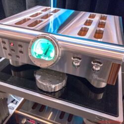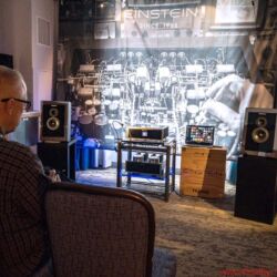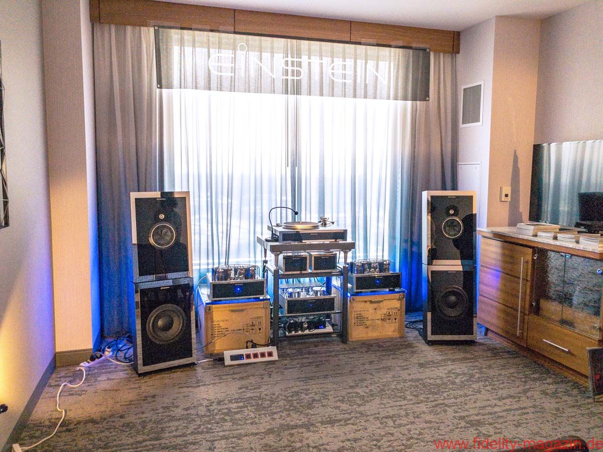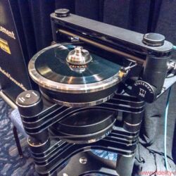 Einstein, no stranger to outstanding shows, cleared the hurdles yet again and equally managed to also raise their bars higher still, however difficult it may be for others to follow. A far smaller suite compared to GTT’s, Einstein never the less managed to elicit similar levels of grandeur and excitement. Celebrating now 30 years in business (!), Einstein used the Axpona show to launch three critical new components: first up was their all new and rather legitimate looking and indeed very fine sounding turntable, aptly named The Record Player. Unique to this turntable are the platter’s pulley with built in bearing to remove nasty cogging effects right at the source, namely the motor. A precision machined aluminum bar connects the substantial bearing to the deck’s arm board, providing additional levels of stiffness for this critical junction. Completing the second announcement was the launch of the 12” version of The Tonearm, a follow-up to the acclaimed 9” version, which was announced last year. Lastly, perhaps most surprisingly, Einstein also announced a late pre-production prototype of an all new current source MC phono stage. In typical Einstein fashion, good simply isn’t good enough, thus this little guy is housed in a machined aluminum enclosure in full dual-mono configuration and outboard dual mono power supply. An auto-tuning current sensing circuit, the total price for this will be around $2900 USD. Can you say wow? Sonically, this room proved quite amazing, even as I am the owner of practically every piece of gear Einstein makes and thus intimately familiar with its sonic footprint. Add to that Volker Bohlmeier‘s terrific music selection – Talking Heads‘ live album Stop Making Sense was in very heavy rotation – and you have a receipt for musical perfection, at a show no less.