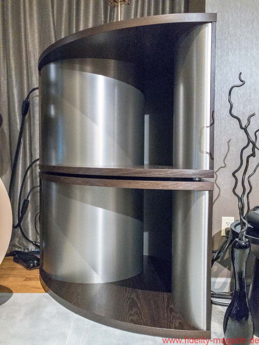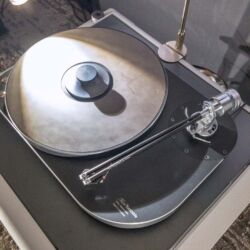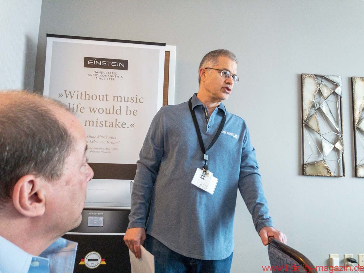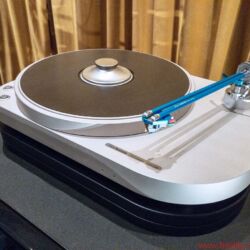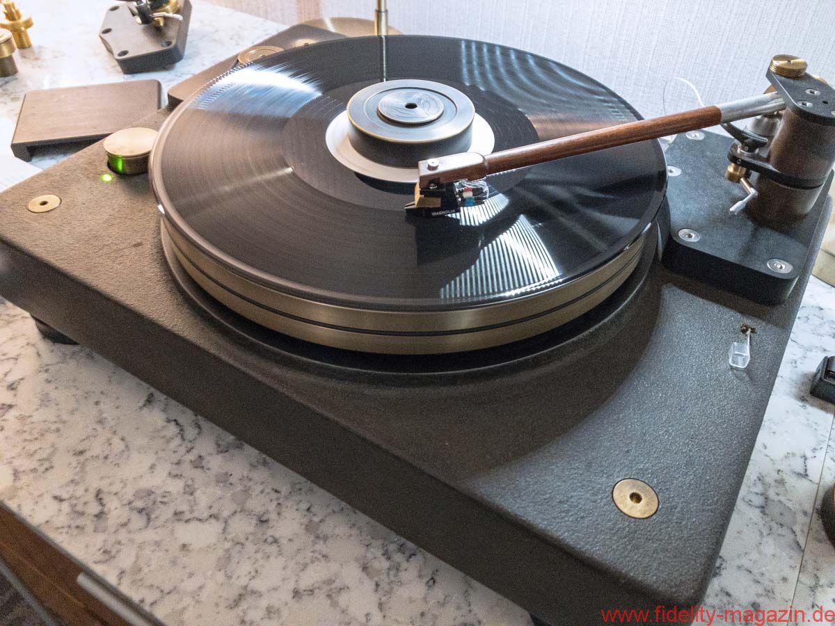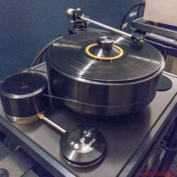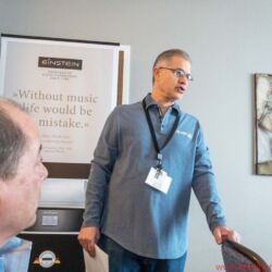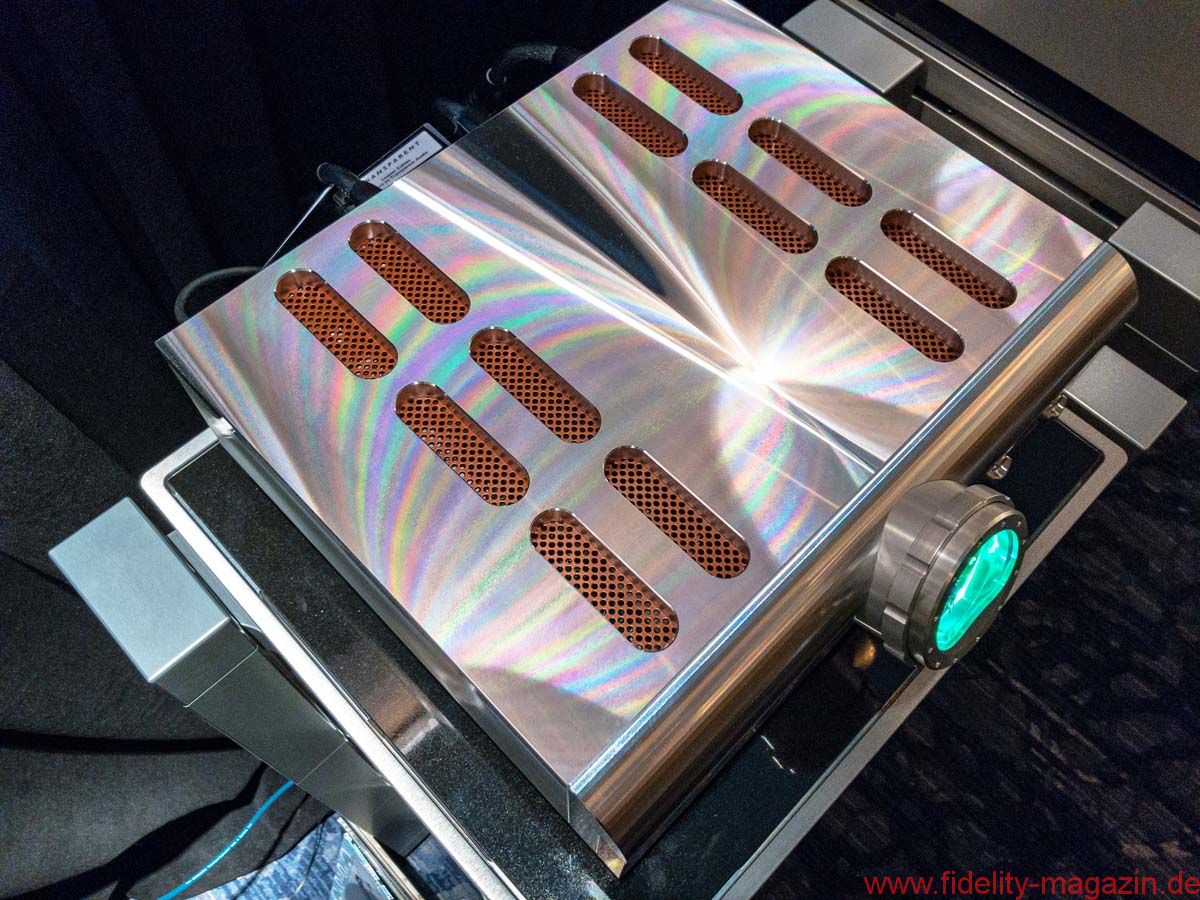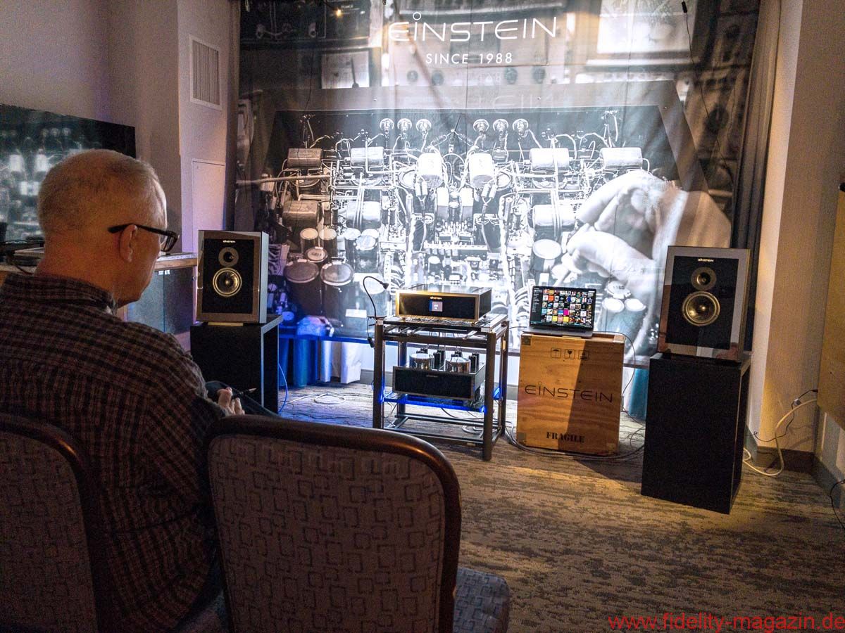Einstein, no stranger to outstanding shows, cleared the hurdles yet again and equally managed to also raise their bars higher still, however difficult it may be for others to follow. A far smaller suite compared to GTT’s, Einstein never the less managed to elicit similar levels of grandeur and excitement. Celebrating now 30 years in business (!), Einstein used the Axpona show to launch three critical new components: first up was their all new and rather legitimate looking and indeed very fine sounding turntable, aptly named The Record Player. Unique to this turntable are the platter’s pulley with built in bearing to remove nasty cogging effects right at the source, namely the motor. A precision machined aluminum bar connects the substantial bearing to the deck’s arm board, providing additional levels of stiffness for this critical junction. Completing the second announcement was the launch of the 12” version of The Tonearm, a follow-up to the acclaimed 9” version, which was announced last year. Lastly, perhaps most surprisingly, Einstein also announced a late pre-production prototype of an all new current source MC phono stage. In typical Einstein fashion, good simply isn’t good enough, thus this little guy is housed in a machined aluminum enclosure in full dual-mono configuration and outboard dual mono power supply. An auto-tuning current sensing circuit, the total price for this will be around $2900 USD. Can you say wow? Sonically, this room proved quite amazing, even as I am the owner of practically every piece of gear Einstein makes and thus intimately familiar with its sonic footprint. Add to that Volker Bohlmeier‘s terrific music selection – Talking Heads‘ live album Stop Making Sense was in very heavy rotation – and you have a receipt for musical perfection, at a show no less.