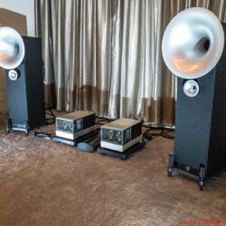 Another standout room was GTTs grand suite featuring YG’s latest Sonja XV Junior speakers, AudioNet’s Stern and Heisenberg pre- and power combo all leashed together via Kubala-Sosna’s exquisite Realization line of cables (side note: I have been using Kubala-Sosna’s Elation! cables these past few months and am frankly so giddy over these that in a first for me, I will be penning a preview for the complete loom of Elation! shortly). Source was a fully tricked out Kronos deck which, when playing Carmen’s Overture on RCA, produced such utterly fantastic sound that I wished I could have sat there all day. Extended, dynamic, panoramic, the shear depth and scale of the recording seemed to find no bounds. A definite highlight of the show.