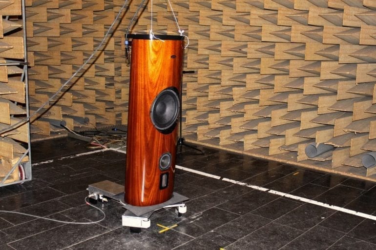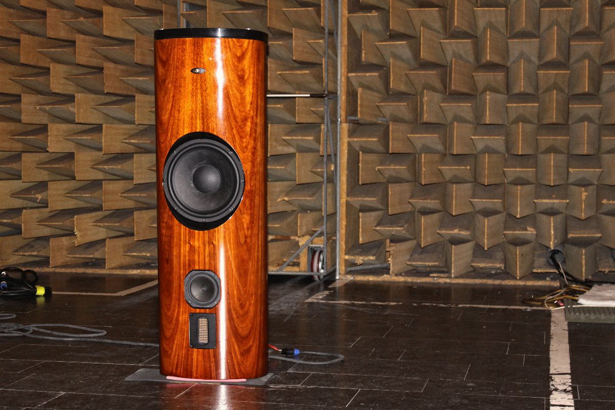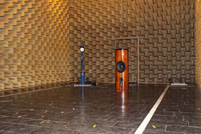 Alle Messungen werden mit dem PC-basierten Messsystem „Monkey Forest“ mit einer Auflösung von 1 Hz oder kleiner bei einer Abtastrate von 96 kHz durchgeführt. Als Messmikrofon wird eine B&K-Kondensatorkapsel des Typs 4939 mit ¼” Durchmesser eingesetzt, dazu ein Impedanzwandler des Typs 2670. Zusammen mit einer Kompensationsdatei erlaubt diese Kombination präzise Messungen bis 40 kHz. Die Signale des Messmikrofons werden mit einem B&K-Messverstärker des Typs 2610 verstärkt, bevor sie von einem hoch präzisen 24 bit/96 kHz-Messfrontend für die Messsoftware zugänglich gemacht werden. Auf der Ausgangsseite stehen zwei kleine 20-Watt-Messverstärker für die Standardmessung zur Verfügung. Wenn es einmal ernst wird und Bedarf nach viel Leistung besteht, kommen eine Crown Reference I oder eine Crown I-T12000 HD zum Einsatz. Der Messraum ist als reflexionsarmer Halbraum mit einem absolut schallharten Granitboden aufgebaut und ermöglicht Freifeldbedingungen ab ca. 100 Hz aufwärts. Das Messmikrofon wird immer auf dem Boden platziert, sodass es für das Mikrofon keine sichtbaren Reflexionen von der Bodenfläche gibt. Messungen für den Frequenzbereich unterhalb von 100 Hz werden als Nahfeldmessungen direkt vor den Quellen durchgeführt und später in der Software mit der Fernfeldmessung automatisch kombiniert. Die Messentfernung sollte einer typischen Hördistanz entsprechen und kann maximal acht Meter betragen. Kleine Lautsprecher werden meist in zwei, größere in vier oder acht Meter Entfernung gemessen.Elektrische Impedanz
