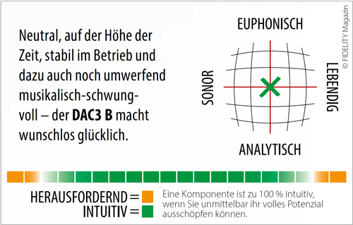 Neutral, auf der Höhe der Zeit, stabil im Betrieb und dazu auch noch umwerfend musikalisch-schwungvoll – der Benchmark DAC3 B macht wunschlos glücklich.
