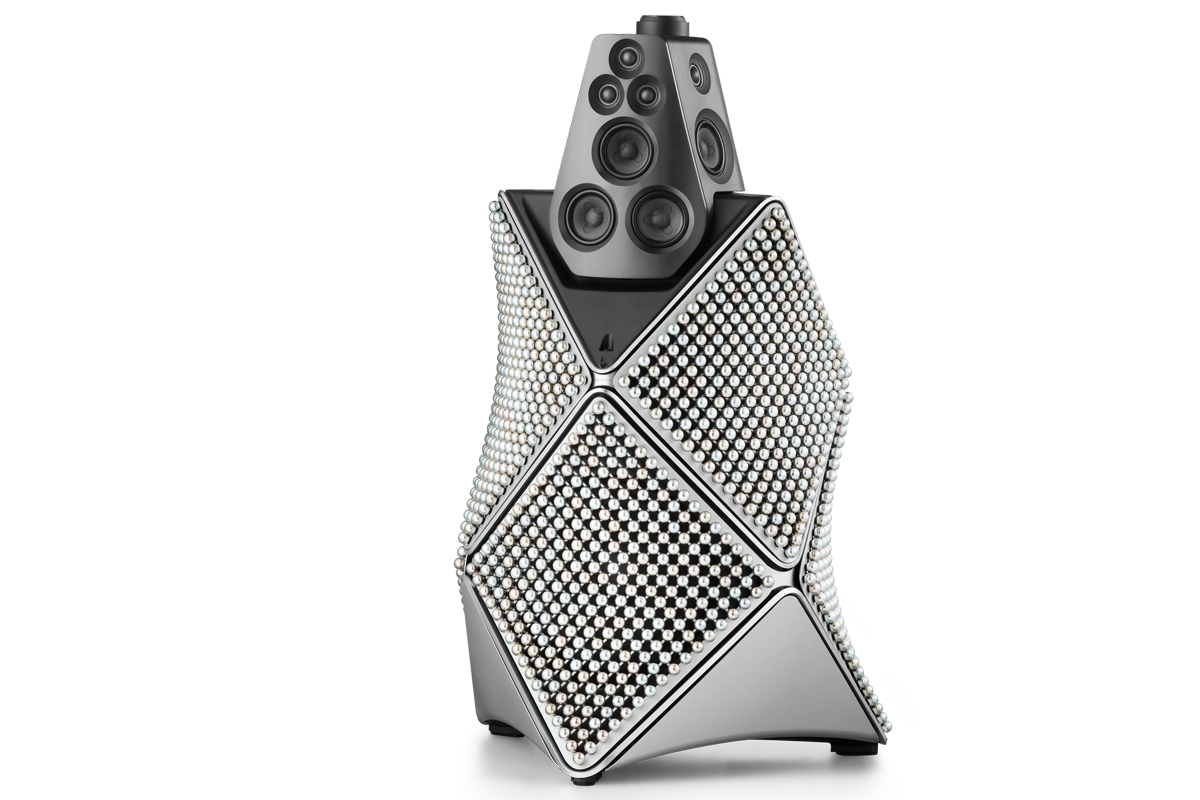 Die Zenith Edition steht für skulpturale Präzision und optische Eleganz. Auf den sechs Blenden befinden sich jeweils 289 Kugeln aus eloxiertem Aluminium in sieben perleninspirierten Farben, die mit Licht und Umgebung spielen. Die Frontabdeckung ist perlgestrahlt, dunkelgrau eloxiert und erinnert an die Oberfläche einer Austernschale. Gekrönt wird der Lautsprecher von einem zirkularen Perlmutt-Inlay, das den Durchmesser der Aluminiumkugeln aufnimmt. Geschwungene Blenden folgen den Konturen des Gehäuses, polierte Aluminiumkronen und halbtransparentes Textilgewebe schaffen ein ausgewogenes Verhältnis von optischen und akustischen Elementen. Laut Hersteller entsteht so eine dynamische visuelle Präsenz, die die akustische Leistung des Beolab 90 ergänzt und den Lautsprecher zu einem sensorischen Erlebnis macht.