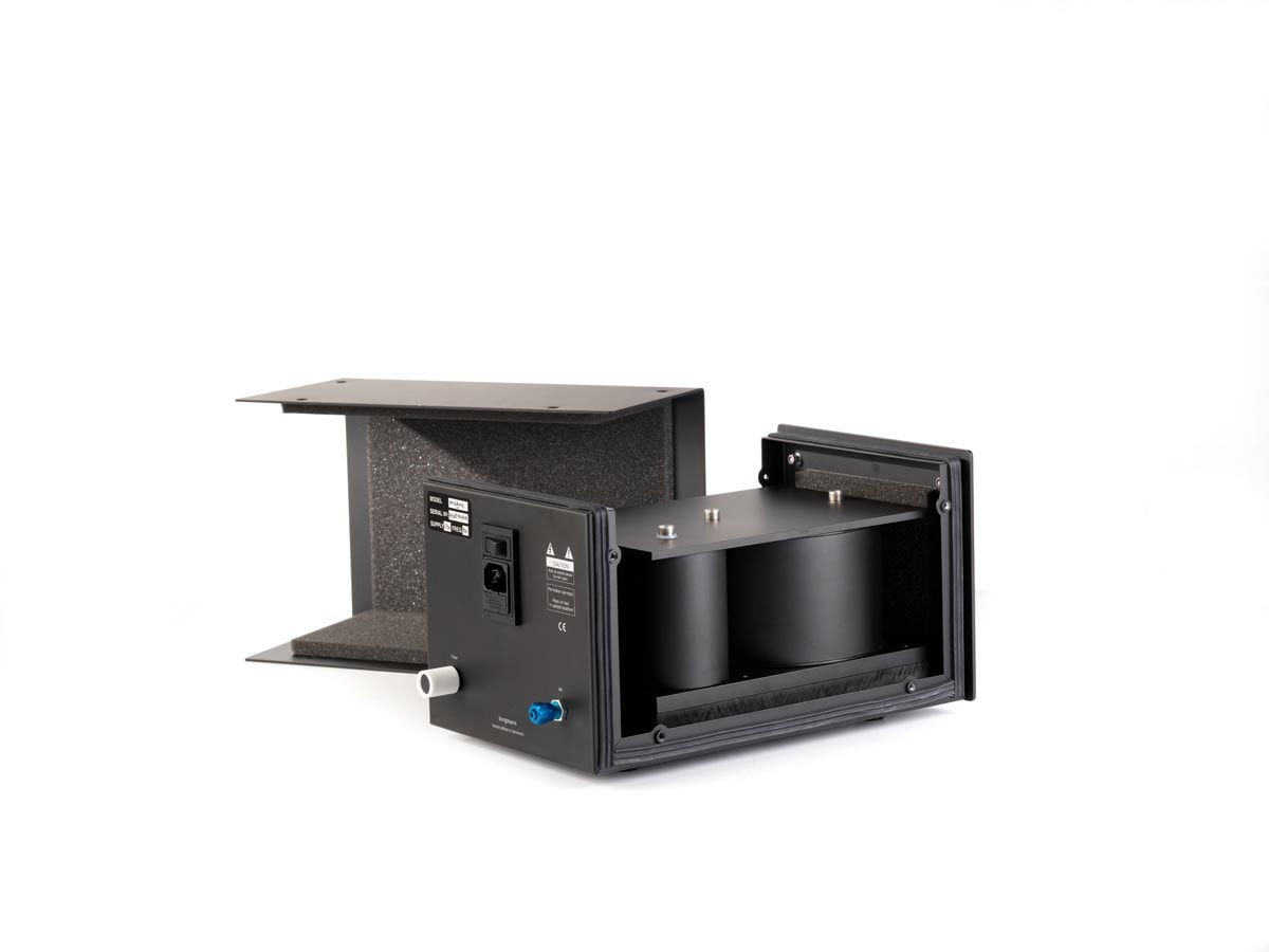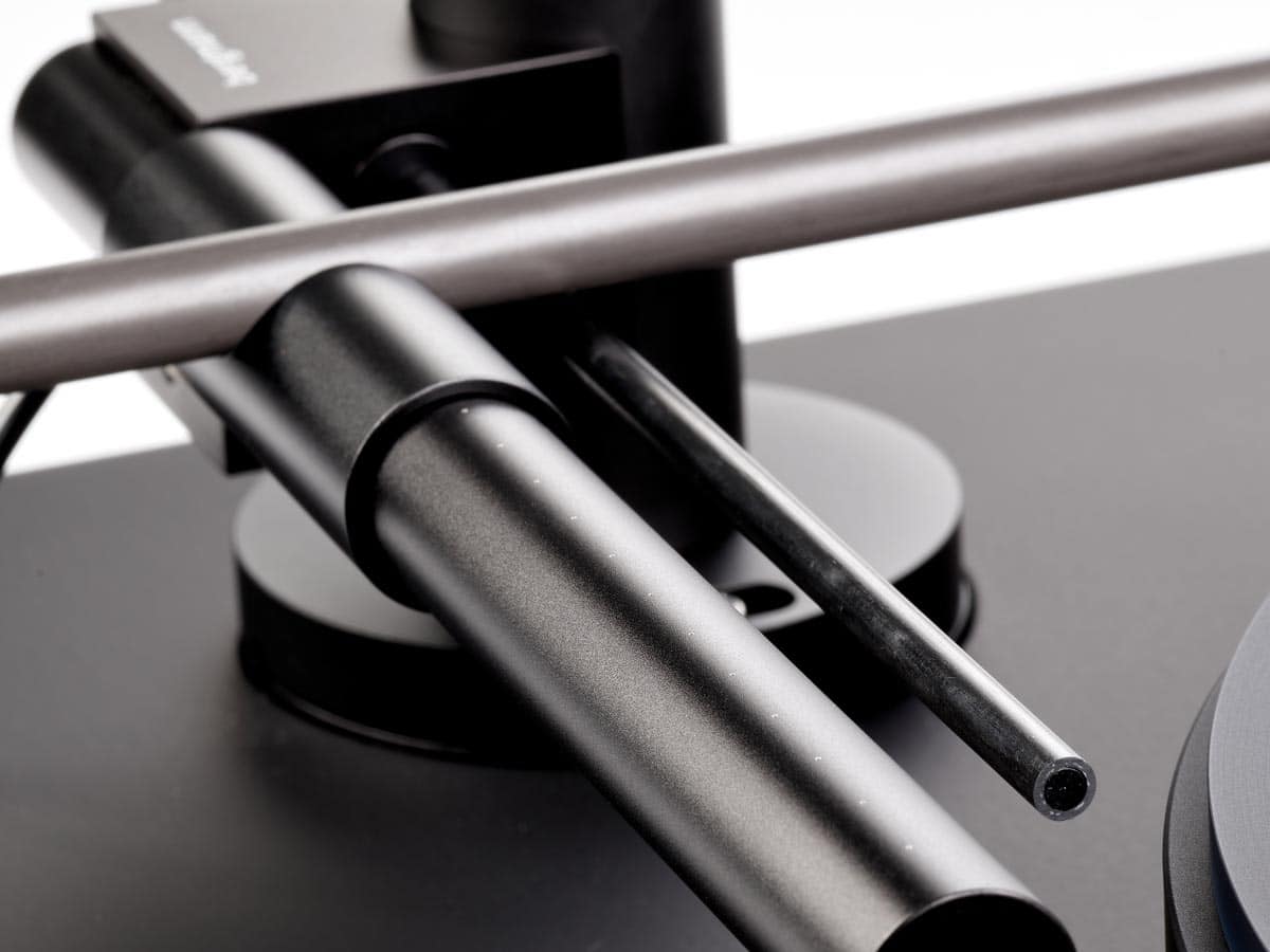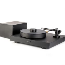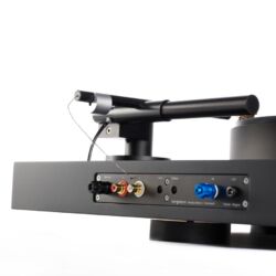 Der Tonarm des Magne schwebt nahezu schwerelos auf einem Luftpolster. Der zugehörige Kompressor lässt auch das Tellerlager des Drehers schweben.