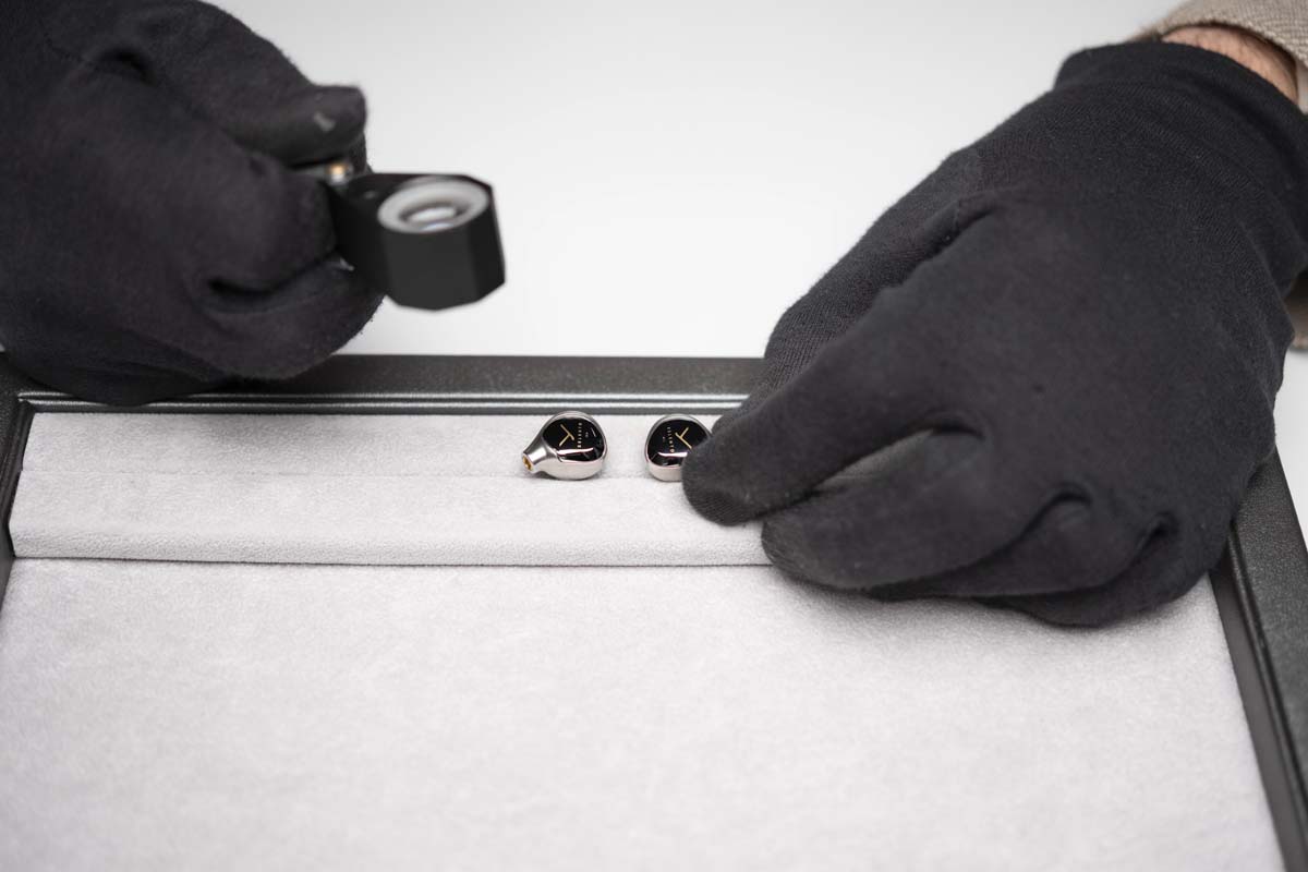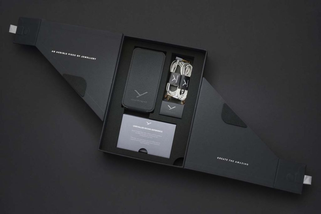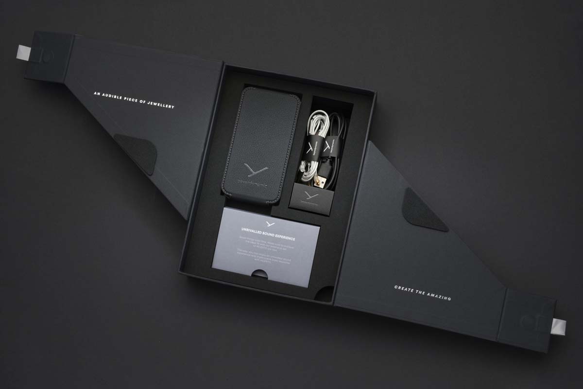 Auch äußerlich spiegelt sich das handwerkliche Geschick, das in die Fertigung der Klang-Juwelen geflossen ist, in dem anspruchsvollen Design und der besten Materialauswahl wider. Für ein herausragendes Klangerlebnis werden ausschließlich vergoldete Stecker und versilberte Kabel verwendet. In Anlehnung an diesen audio-technischen Anspruch ist als besonderer Blickfang die glänzende Gehäusefront mit echtem Gold verziert – handgefertigt aus 24 Karat Gold und in einem hochpräzisen technischen Verfahren angebracht.