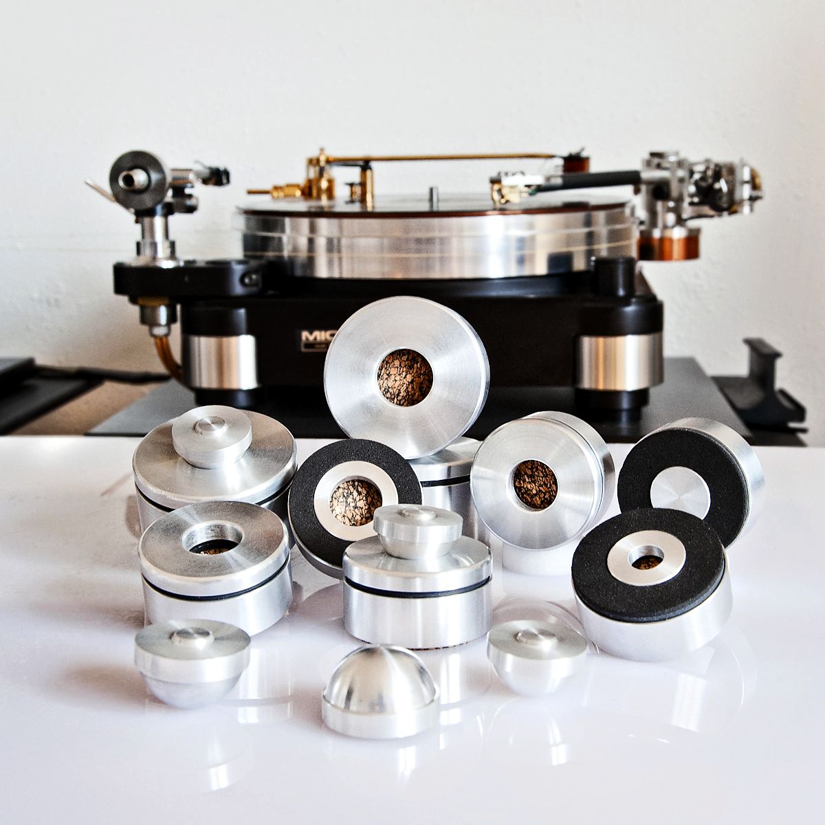 Das Motto ist eigentlich simpel: Gutes und Bewährtes weiter verbessern, Ideen ungebremst sprudeln lassen. Mit diesen „Markenzeichen“ hat Reinhold Schäffer, Chef von bFly-audio und Konstrukteur erstklassiger Absorber, schon vor gut einem Jahr meine Aufmerksamkeit auf sich gezogen. Nun galt es herauszufinden, wie sich die Produktpflege der Absorber Master-1 zur Mk-II-Version, aber auch die Neuentwicklung der zweiteiligen Stage-Füße klanglich darstellen würde. Ich war schon im Vorfeld gespannt. Die bekannten Master-Absorber wurden für die verbesserte Mk-II-Version in einem entscheidenden Punkt modifiziert: In die Stellfläche des Absorbers setzt bFly-audio nun ein sogenanntes „HS Plug-in“ ein. Dieser eingelassene Ring aus extrem festen Aluminium soll ein verbessertes horizontales Schwingungsverhalten garantieren. Gerade bei Signalquellen wie CD-Player oder Plattenspieler soll so eine gesteigerte Ruhe im Klangbild erzielt werden. Zudem kommt hier die bewährte MLA(Multi Layer Adjustment)-Technologie zum Einsatz: Man arbeitet mit fünf Ebenen aus Sorbothan, Kork und Kautschuk. Anzuraten ist auch weiterhin, die Absorber passend zum Gerätegewicht auszuwählen.
