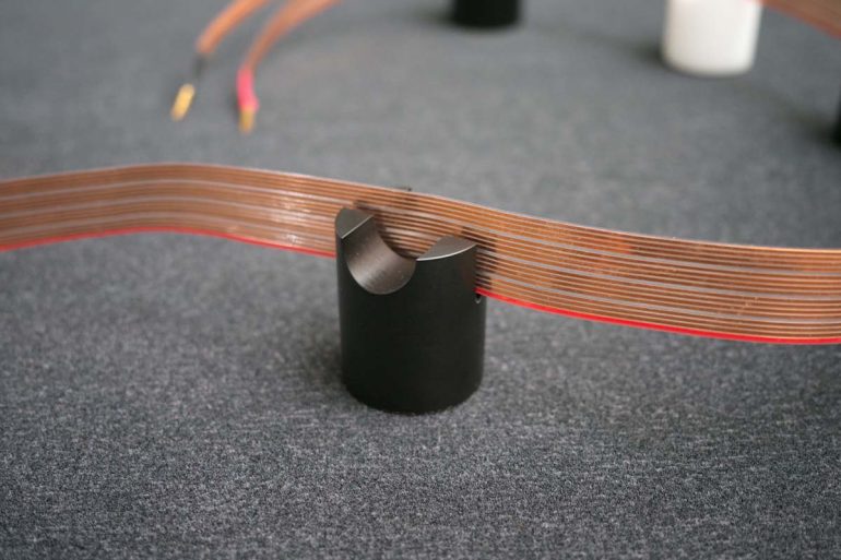 So weit ist das alles ja ganz schön, aber was passiert bei der Verwendung der „Abstandshalter“ klanglich? Das ist doch die uns final bewegende Frage … Nun, das Klangbild wird beim Einsatz der Tower-Flex im Wesentlichen ruhiger und damit definierter, weil (siehe oben) die Einflüsse abnehmen. Das gilt gleichermaßen für Netz- wie auch Lautsprecherkabel, in letzter Konsequenz natürlich ebenfalls für NF-Kabel, falls diese zu nah am Boden sind oder sogar darauf liegen. Der klangliche Unterschied ist keiner, der sich über Stunden/Tage entwickelt. Nein, er ist sofort hörbar da. Sicherlich nicht immer in der gleichen Deutlichkeit – und wie viele Exemplare der Tower-Flex benötigt werden, liegt an der jeweiligen Bauausführung des entsprechenden Kabels. Ist dieses physisch recht starr und entsprechend in sich stabil, benötigt der Anwender weniger als bei einem „weichen“ Kabel. Üblich sind Abstände zwischen 30 und 50 Zentimeter, aber, wie soeben angemerkt: Es kommt auf den Einzelfall an …