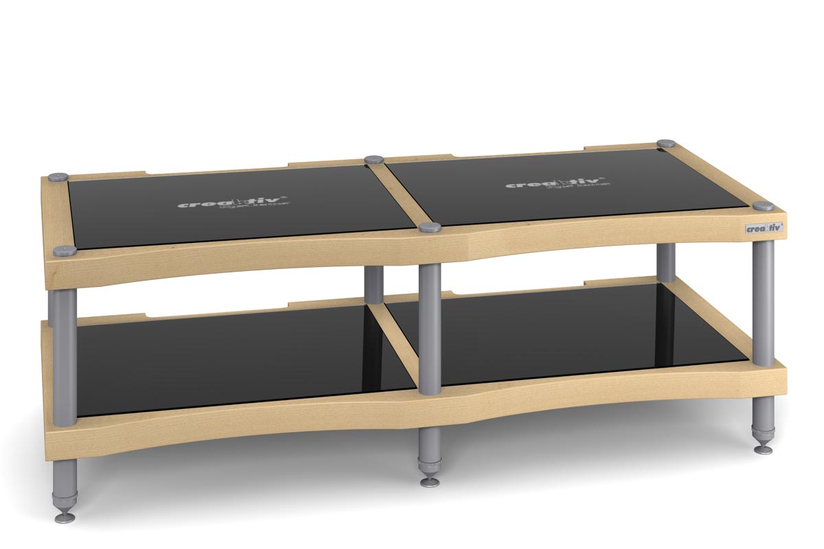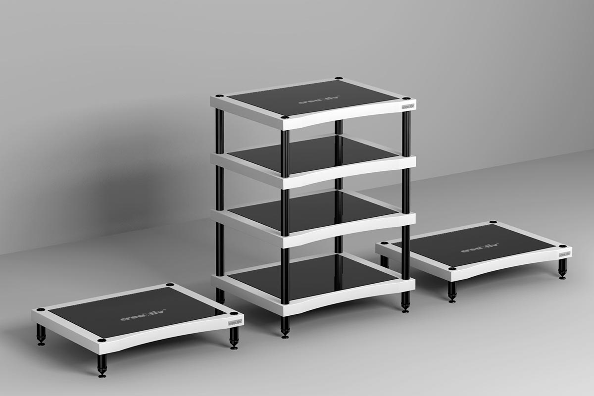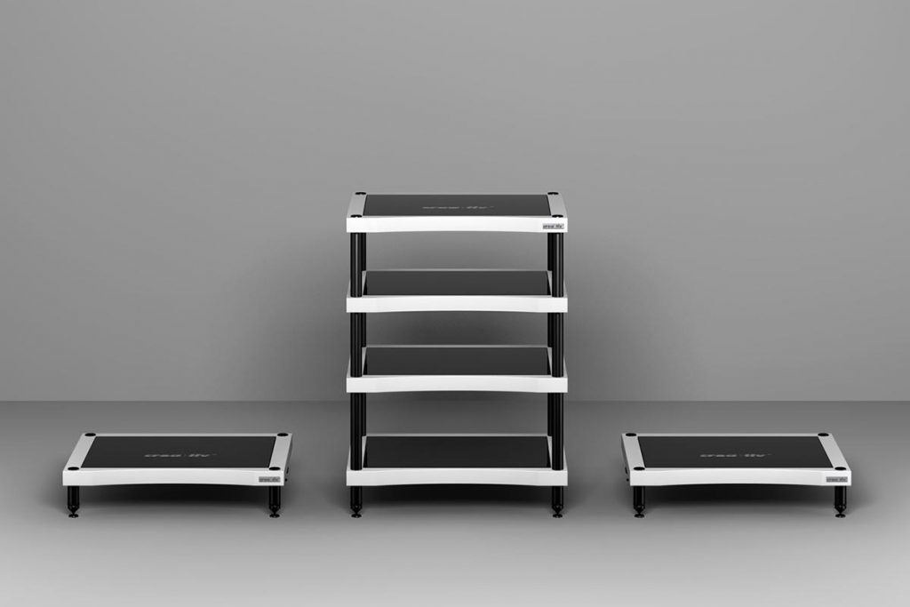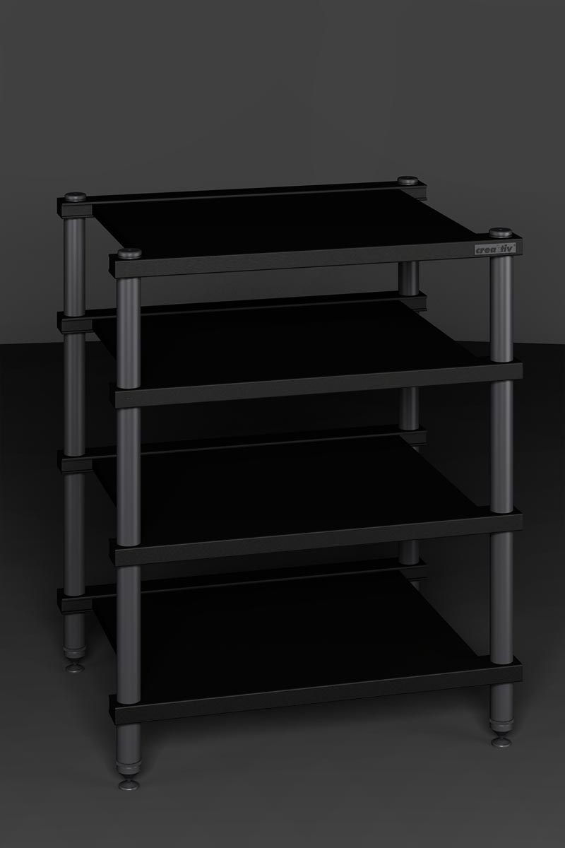 Durch ihr praktisches Verschraubungskonzept lassen sich die Racks auch im Nachhinein umkonfigurieren und erweitern. Im Bild das Big Reference als HiFi-Rack und als Endstufenbasis.