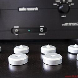 • Sound Pucks: Die runden silbernen Magnesium-Pucks (32×10 mm) mit ihrer Vertiefung für eine Spikeaufnahme sind unter Komponenten oder ganzen Racks als Gerätefuß – direkt oder unter vorhandenen Füßen – nutzbar.
