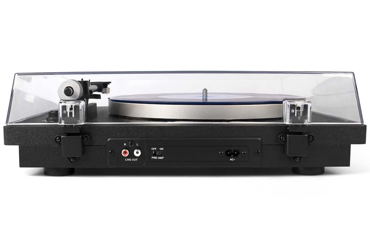 Mit dem Moving Magnet-System von Audio Technica setzt der TT 100 TX auf ein sehr gutes Abtastverhalten und hochwertige Komponenten. Dank der integrierten Bluetooth-Schnittstelle, koppelt er sich auf Wunsch mit Kopfhörer, Lautsprecher und Co. und überträgt die Musik kabellos. Alternativ lässt sich der Plattenspieler kabelgebunden über einen abschaltbaren RIAA-Entzerr-Vorverstärker zum Beispiel mit der HiFi-Anlage verbinden. So ist der Vinyl-Spieler kompatibel zu allen marktüblichen Audioeingängen.
