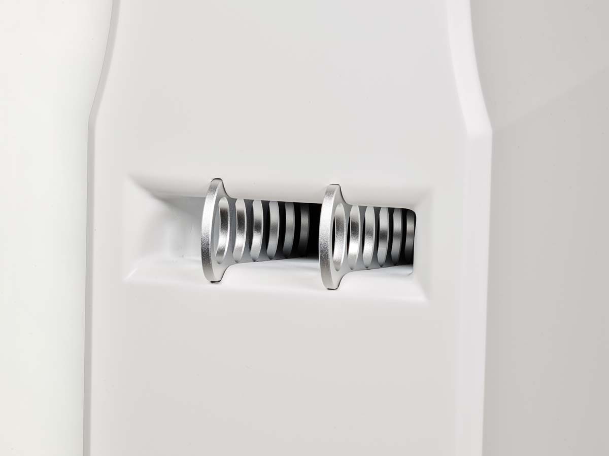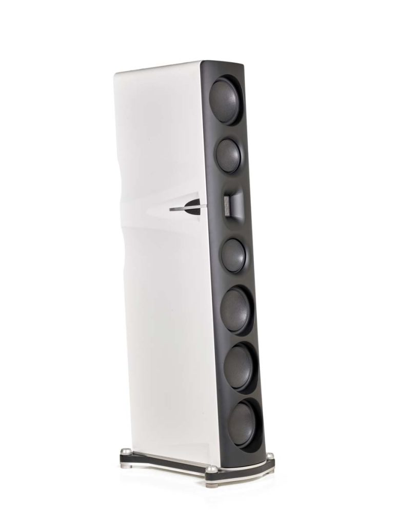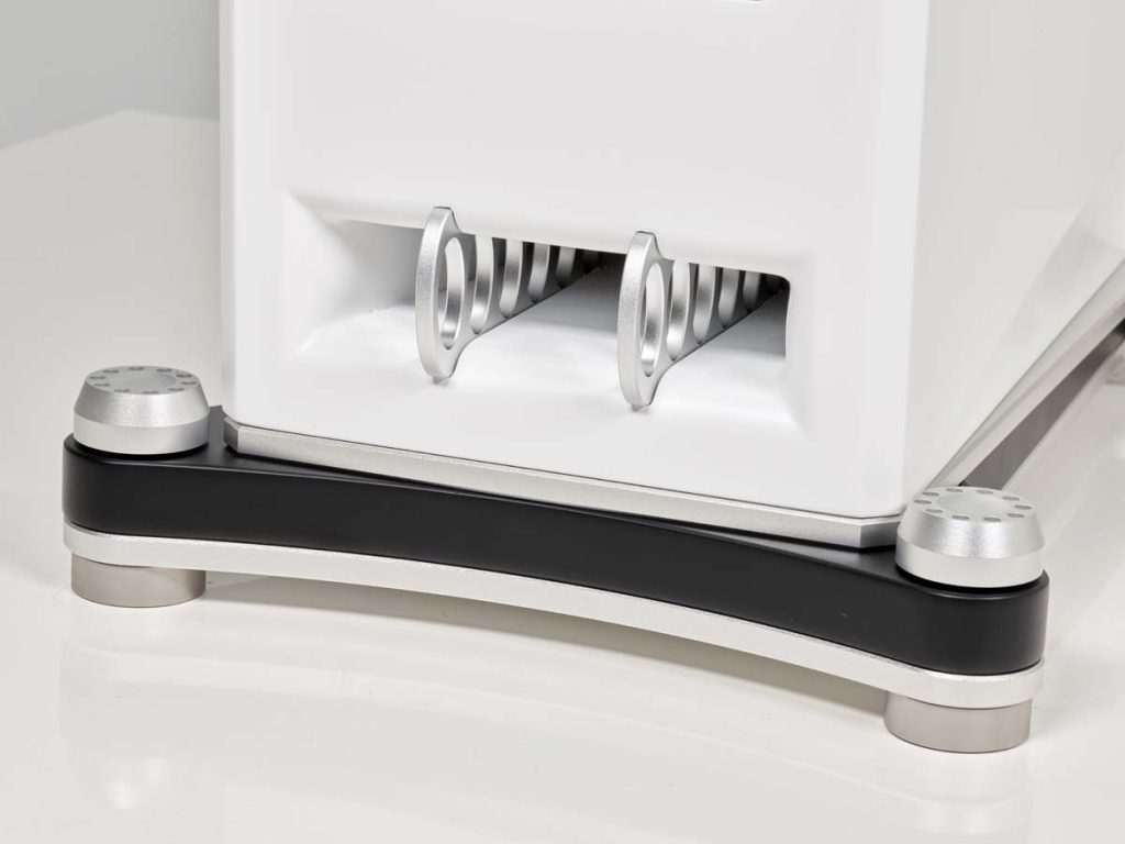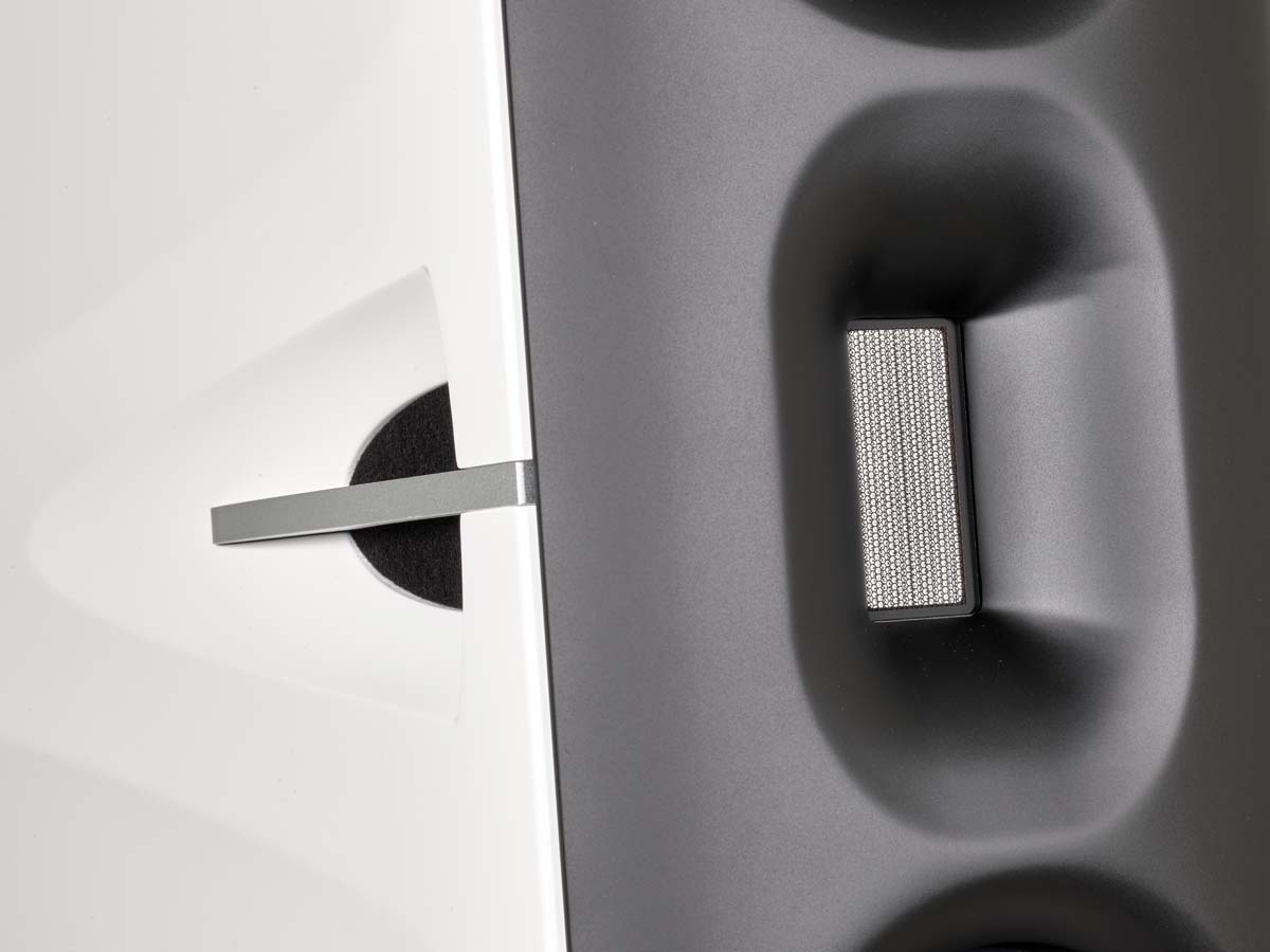 Die Membran selbst besteht aus einem Hightech-Sandwich: Zwei hauchdünne Lagen Carbon umschließen einen dünnen Kern aus Nomex-Waben. Herausragende Stabilität, gerade bei vertikalen Schwingungen, bei gleichzeitig minimalem Gewicht – das ist die Kombination, von der Lautsprecherhersteller immer träumen. Dass die Spulen aus verkupfertem Aluminium bestehen, um wiederum Leitfähigkeit und Masseeinsparung zu verbinden, darf man als nette Dreingabe sehen.