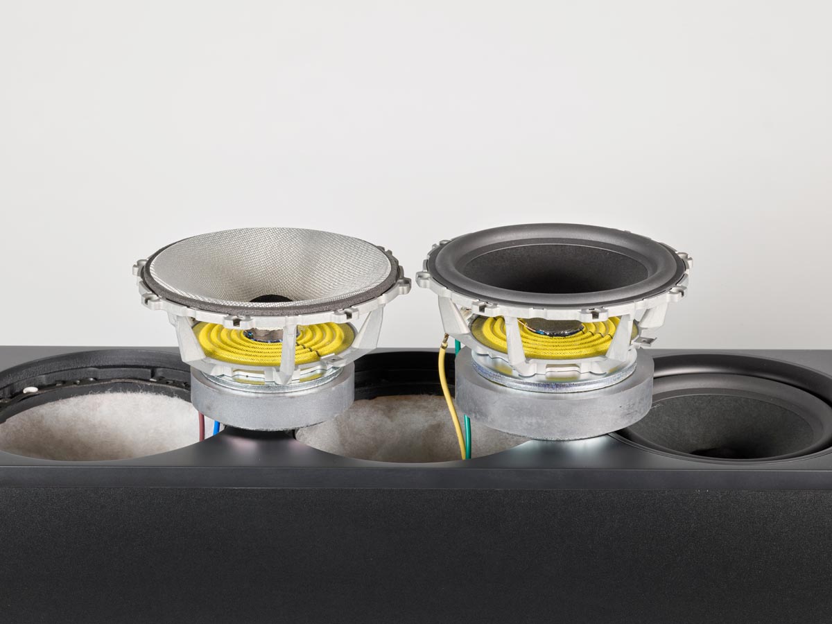 Dass die Chassis verändert wurden, war mir hingegen bekannt. Die Übernahme des Continuum-Treibers ließ sich absehen. Das Material war zunächst von der 800er-Serie an die 2017 gestartete 700er-Linie vererbt worden und ist nun auch in der kleinen „Sechs“ zu finden. Auch drei Jahre nach seiner Veröffentlichung empfinde ich es als den massivsten Einschnitt in B&Ws Historie: Kam man früher in einen Laden oder in eine Vorführung, musste man die Umgebung nur kurz scannen und wusste: „Ahhh, eine B&W.“ Das ist seit Continuum anders. Die silbrige Membran ist entschieden dezenter – und das ist andererseits großartig, denn irgendwie hatte ich mich etwas sattgesehen am gelben Kevlar, das die Boxen über mehrere Dekaden begleitete.