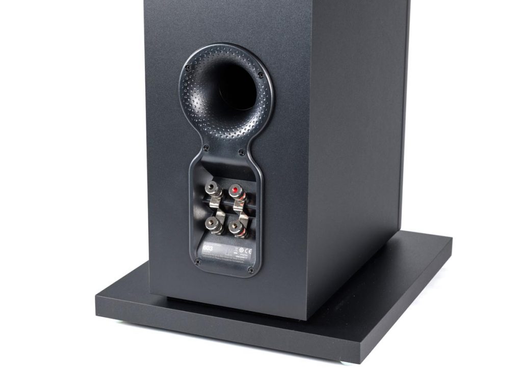 Und noch ein weiteres Detail wurde verändert: Der Flowport, B&Ws aerodynamisch optimierte Variante der Bassreflexöffnung, saß früher direkt unterhalb der beiden Basstreiber. Bei der 603 ist er an die Rückseite gewandert, was der Optik fraglos zugutekommt. Freilich benötigt das neue Modell damit etwas mehr Rückenfreiheit. Wer die knapp einen Meter hohe Box aufgrund „räumlicher Zwänge“ direkt an der Wand parken muss, sollte ohnehin besser zu einem der Kompaktmodelle greifen. In unserem Hörraum hatte die 603 in jede Richtung wenigsten einen Meter Spielraum. Sie gibt sich auch mit weniger zufrieden, 50 Zentimeter Abstand sollten es aber schon sein.