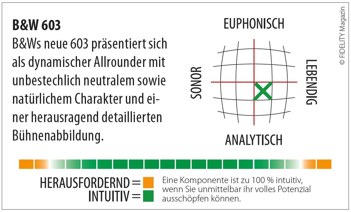 B&Ws neue 603 präsentiert sich als dynamischer Allrounder mit unbestechlich neutralem sowie natürlichem Charakter und einer herausragend detaillierten Bühnenabbildung.