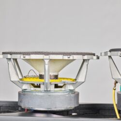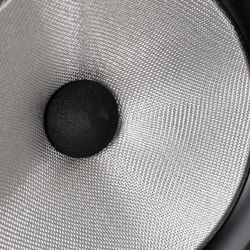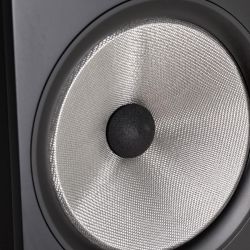 Der Tweeter ist ganz der Alte. Wie bei den Vorgängern kommt eine doppellagige Titankalotte zum Einsatz, deren rückseitiges „Atemröhrchen“ an die Modelle der 800er-Reihe erinnert. Diese Konstruktion optimiert das Resonanzverhalten des Hochtöners und hebt die Bandbreite auf 38 Kilohertz. Gleichwohl gibt der Hersteller den linearen Übertragungsbereich mit maximal 28 kHz an. Sehen kann man das Röhrchen von außen natürlich nicht. Unverkennbar ist dagegen, dass die Briten ihren Tweeter von der Metallumrandung befreit haben, die bis zur Oberkante der Gehäusefront reichte und das Chassis vollständig einfasste. Was nach reinem Facelifting aussieht, hat einen praktischen Hintergrund: Die Anordnung des Titan-Tweeters wurde innerhalb der nun kreisrunden Einfassung optimiert. Das verbessert sein Abstrahlverhalten und das Mikrotiming im Zusammenspiel mit dem benachbarten Continuum-Treiber. Das schützende Lochgitterchen der 683 S2 wurde durch ein filigranes Metallgeflecht ersetzt, das die moderne Anmut der Lautsprecher abrundet.