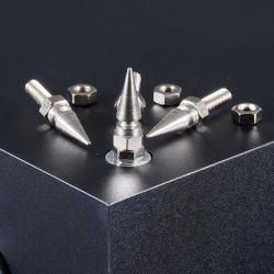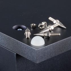 Zubehör: Verschlussstopfen für die Bassreflexöffnung, Spikes, Gummifüße