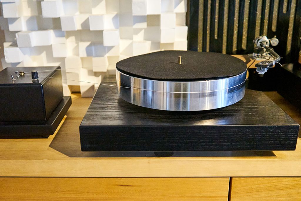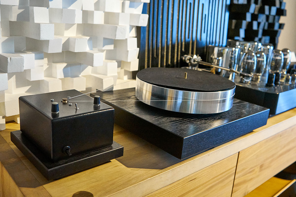 Aber auch die analoge und röhrenbestückte Musikwiedergabe findet ihren Platz. Beeindruckt nehme ich die Zahl der Plattenspieler zur Kenntnis, die in der Werkstatt auf die fachkundige Hand Siegfried Wörners warten. Offenbar hat sich in Berlin herumgesprochen, dass man hier eine sorgfältige Revision bekommen kann. Bei neuen Laufwerken ist der Linn-Klassiker Sondek LP12 omnipräsent, von dem alle Ausführungen vor Ort verfügbar sind. Mein Auge bleibt später an einer Nouvelle Platine von Verdier hängen, die im großen Hörraum ausgestellt ist, allerdings handelt es sich hier um einen Verkauf im Kundenauftrag.
