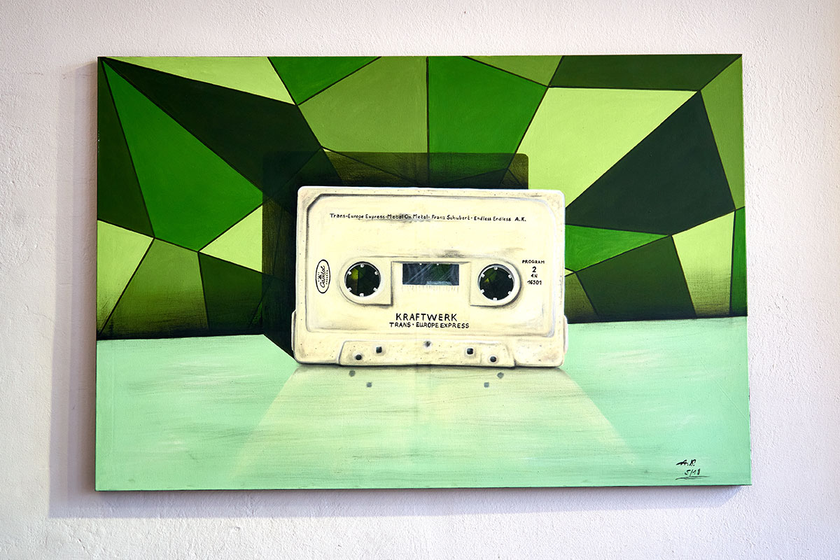 Je länger ich an diesem Nachmittag im Ladengeschäft weile, desto mehr fällt mir die ungezwungene Atmosphäre des Ladens auf. Boxen Gross wirkt auf eine äußerst sympathische Weise authentisch. Auch wenn am Kreuzberger Oranienplatz bereits die ersten Auswirkungen der Gentrifizierung zu spüren sind, muss man weder zur Berliner Notariatsschicht noch zur neureichen urbanen Hipster-Szene zählen, um sich hier willkommen zu fühlen. Zur Authentizität des Ortes tragen gewiss auch die großformatigen Gemälde bei. Die sind über mehrere Studios verteilt und bieten eine Zeitreise in die typische Berliner Kunstästhetik der 80er und 90er Jahre.