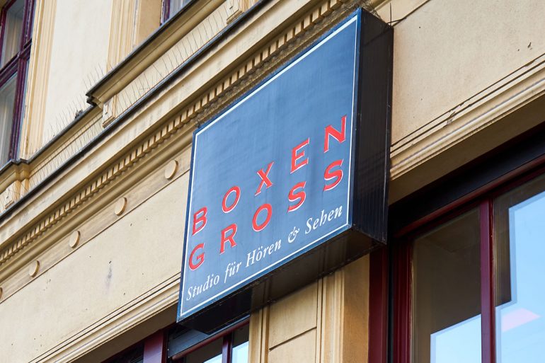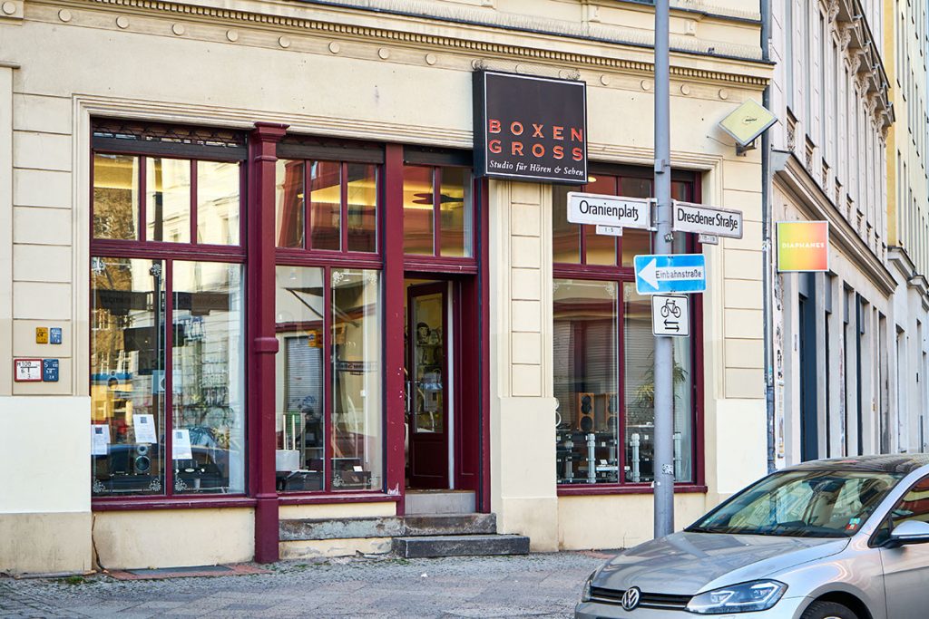 Die Firma Boxen Gross ist in ihrer Historie ein typisches Westberliner Kind der späten 70er Jahre. Technikbegeisterte Studenten machten sich damals in leerstehenden Fabriken daran, eigene HiFi-Kreationen zu entwickeln. Wie der Firmenname unschwer erkennen lässt, verkauften die Jungs, die sich alle aus einer WG kannten, zuerst selbst gebaute Lautsprecher, bevor dann in einer Fabriketage auch noch Verstärker und Plattenspieler ins Verkaufsprogramm aufgenommen wurden. Schon immer residierte man im Kiez zwischen Neukölln und Kreuzberg, zunächst am Maybachufer und seit 2003 im jetzigen Geschäft mit einer Ladenfläche von 150 Quadratmetern am Oranienplatz. Seit Mitte der 90er Jahre ist als weiteres Standbein die professionelle Beschallungstechnik hinzugekommen, und so werden heute angesagte Szene-Clubs und Locations wie das Watergate oder das Cookies ebenso von Siegfried Wörner und seinen Mitarbeitern betreut wie etwa der feine Club Felix im berühmten Hotel Adlon.