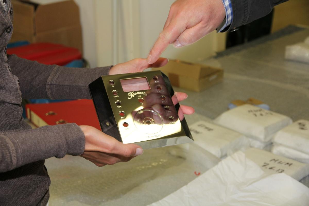 Nur in einem sehr speziellen Fall sollte Dieter Burmester von dieser Maxime abweichen. Beim Entwerfen des Schriftzugs für seine Firma, der auf den ersten Blick mit hoher Qualität und Sorgfalt assoziierbar sein sollte, hatte er die typischen Schreibschriften englischer Traditionsfirmen vor Augen – zumindest glaubte er das. Als ihm Jahre später eine alte Postkarte in die Hände fiel, stellte er allerdings verblüfft fest, dass es sich bei dem geschwungenen Schriftzug auf den Burmester-Geräten tatsächlich um jenen seines längst verstorbenen Vaters handelt (der hierauf laut dem Firmengründer, wenn er es noch erlebt hätte, sicherlich stolz gewesen wäre).
