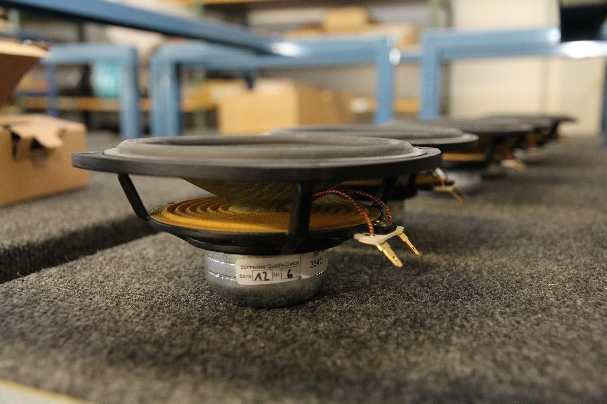1994 erweiterte Burmester sein Sortiment auf Lautsprecher, nachdem er sich zuvor bei der Präsentation seiner Geräte auf Messen regelmäßig darüber geärgert hatte, dass Leute, die seine Firma nicht kannten, immer als Erstes nach den von anderen Herstellern ausgeliehenen Lautsprechern gefragt hatten. Da er die üblichen Kalotten nie hatte leiden können, verwendete er als Hochtöner einen Air-Motion-Transformer, dessen ziehharmonikaartig gefaltete Membran durch den bei Anlegung eines Magnetfeldes entstehenden Strom hin und her bewegt wird. Als weitere Besonderheit wählte er für den Mitteltonbereich ein ungewöhnlich großes Chassis mit 17 Zentimetern Durchmesser, um mehr Luft in Bewegung zu bringen und Dynamik zu erzeugen, ein Design, das im Laufe der Jahre ebenfalls von vielen anderen Herstellern übernommen werden sollte. Aktuell arbeitet man bei Burmester an einem In-Wall-Boxenprogramm.