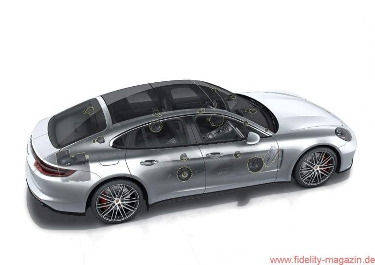 Beflügelt durch 21 Lautsprecher und 21 Endstufen-Kanäle mit einer Gesamtleistung von 1.455 Watt fährt das 3D-Audio-System des neuen Porsche Panamera auf die Pole Position. Schon der Vorgänger setzte Maßstäbe in seinem Segment. Viele Experten sahen darin das beste Sound-System, das sie bis dato auf Rädern gehört hatten.