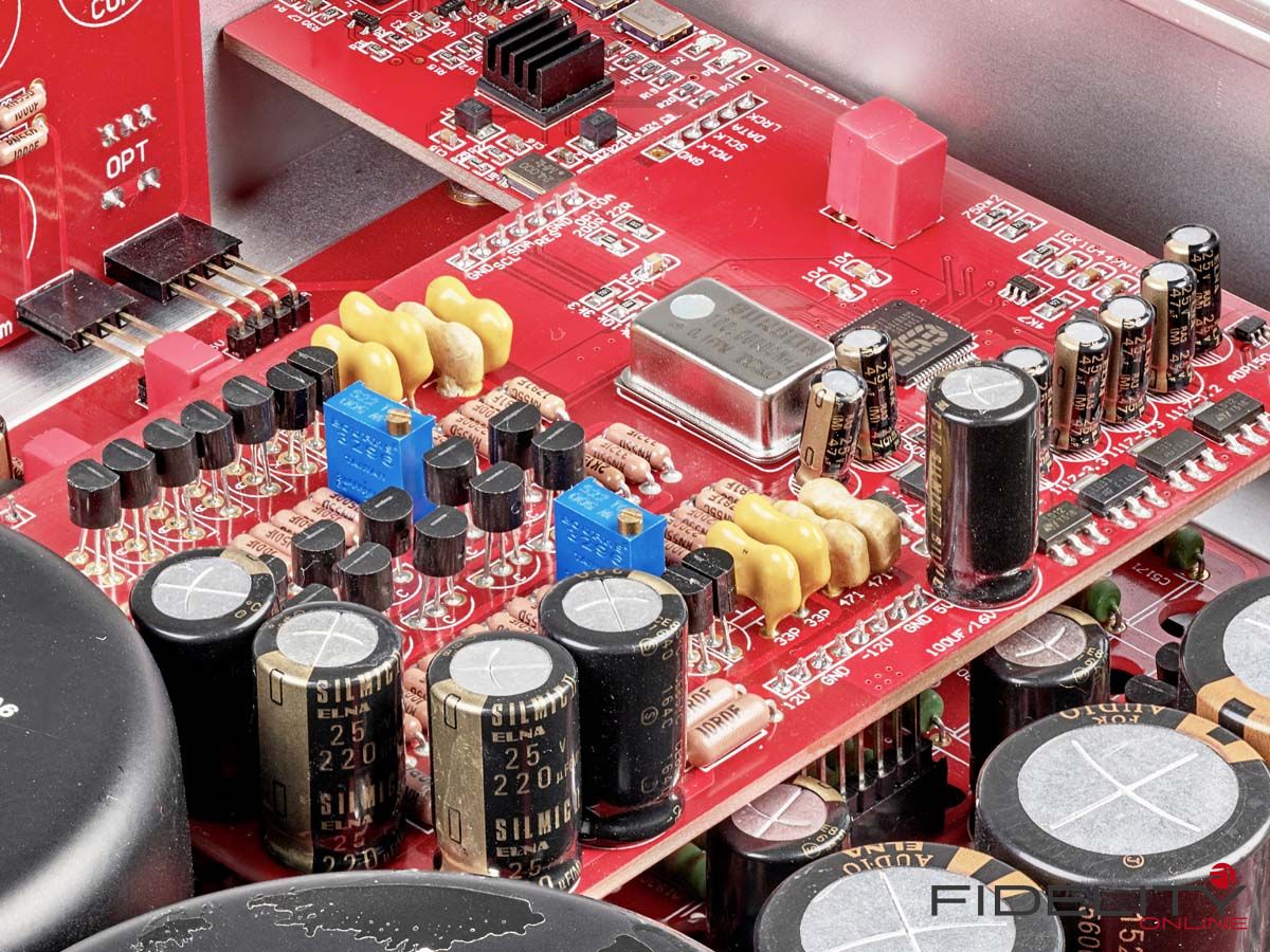 Der eigentliche Wandler-Chip ist für das Burson-Team klanglicher Dreh- und Angelpunkt in diesem Gerät, weshalb an dieser Stelle besonders viel experimentiert wurde. Letztlich musste der Burr-Brown-DAC des Vorgängers seinen Abschied einreichen und einem vergleichsweise richtig teuren Sabre32 von ESS weichen. Dieser Chipsatz glänzt mit einem fantastischen Auflösungsvermögen und durch die Bank erstklassigen Messwerten, ist aber anscheinend nicht zu leicht in vorhandene Schaltungen zu integrieren. Ich hörte schon einige Geräte mit diesem Baustein, die abseits aller Qualitäten bei schwierigen Frequenzen leicht glasig klangen. Burson weiß um diese Probleme und verwandte wohl einen Großteil der Entwicklungszeit auf genau diese nahtlose Einbindung. Wir werden hören.