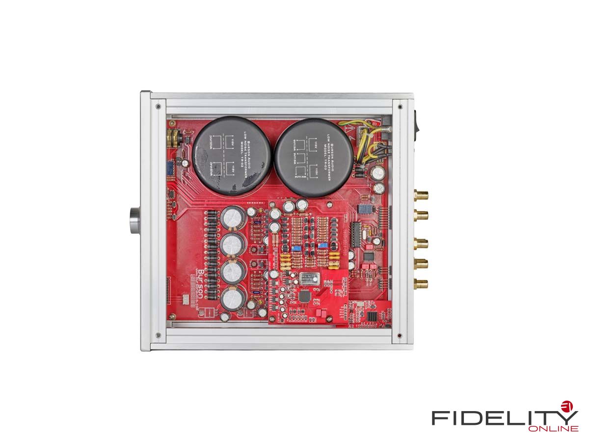 Auch beim Kopfhörerausgang wurde aus dem Vollen geschöpft. Eine diskret aufgebaute Class-A-Schaltung, die von immerhin zwei eigenen Ringkerntrafos versorgt wird, schickt mehr als acht saubere und stramme Watt pro Kanal zur Buchse. Bleibt noch die Lautstärkeregelung, die sowohl beim Betrieb mit Kopfhörern als auch als reine Vorstufe (für mich) eine zentrale Rolle spielt. Mittlerweile wechselte Burson vom klassischen Potentiometer zu einem Chipsatz von Texas Instruments, dem PGA2310. Dieser kleine Vielfüßler soll neben einer besonders verzerrungsarmen Übertragung eine extreme Kanalgleichheit nahe der Messbarkeitsgrenze zur Verfügung stellen. Für eine saubere Raumdarstellung ist das von entscheidender Bedeutung. Dass die Anbindung an USB mittels des erstklassigen XMOS-6core-Moduls erfolgt, verwundert nicht mehr, sondern ist logische Konsequenz. All diese hochwertigen Innereien werfen in Kombination mit dem massiv gefertigten Gehäuse die Frage auf, wie das alles zu einem vergleichsweise günstigen Preis möglich sein soll − zumal in Melbourne und nicht in einem Niedriglohnland gefertigt wird.