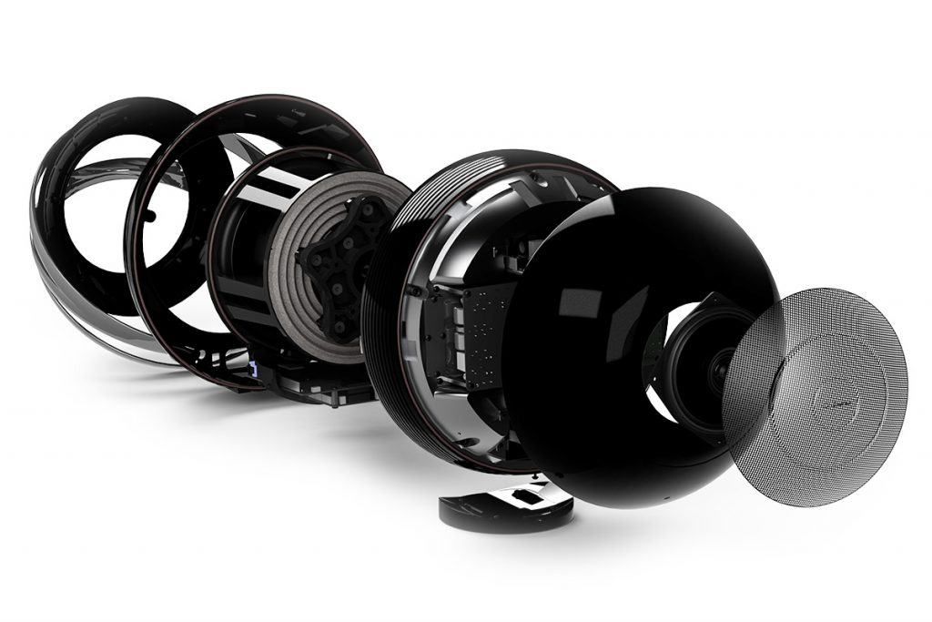 Die Kugel ist Grundlage der meisten Cabasse-Konzepte. In ihre kreisrunden, durchs Eigengewicht beruhigten Gehäuse kaskadieren die Entwickler bis zu vier Treiber, die sich in koaxialer Anordnung verschachteln. Warum? Das hat mehrere Gründe: Zum einen bilden Kugeln eine perfekte Ausgangsbasis für Schallabstrahlung. Stehende Wellen im Inneren des Gehäuses, die zu Färbungen oder Dröhnen führen könnten, sind hier nahezu ausgeschlossen. Kantenbrechungen, sogenannte „Diffraktionen“ an der Außenseite, sind sogar unmöglich. Zudem lassen sich zwei, drei oder vier Treiber ( „La Sphere“), die ineinander verschachtelt angeordnet sind, ohne größeren Aufwand in perfektes Timing rücken.