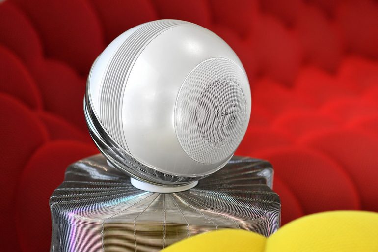 Nur wenigen Herstellern gelingt es so überzeugend wie Cabasse, die gebotenen Anforderungen naht- und bruchlos in die eigene Tradition einzubetten. Zugegeben: Die französischen Klangtüftler waren vorbereitet. Seit Jahrzehnten konstruieren sie Lautsprecher, die mit ihren teils außergewöhnlichen Konzepten herausragend musizieren und zugleich in modernen Kunstausstellungen bestehen könnten. Die Pearl steckt wie ihre Vorbilder in einem kugelrunden Gehäuse aus GFK und Resin, das in weißer oder schwarzer Lackierung ausgeliefert wird und stattliche 18 Kilogramm auf die Waage bringt.