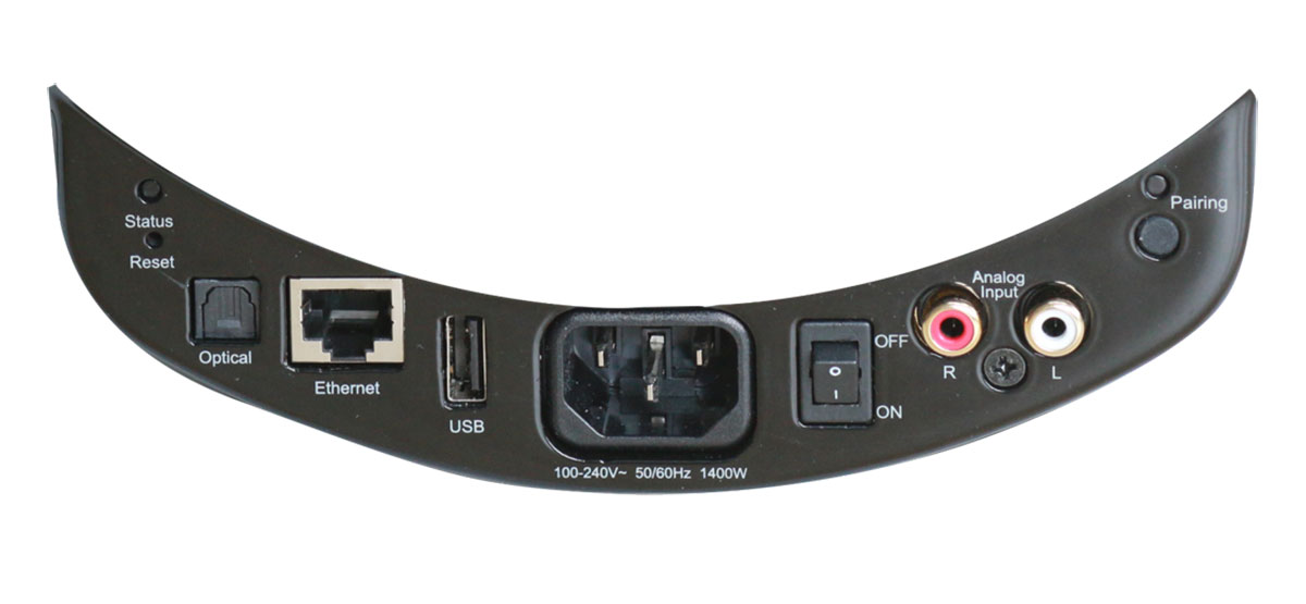 Die Kabel lassen sich äußerst stylisch und effektiv in die Kugeln verlegen. Optional (um 400 Euro/St.) bietet Cabasse einen passenden und optisch wirklich gelungenen Standfuß an. Dessen Träger sind hohl und lassen sich durch ihre Öffnungen als Kabelkanäle verwenden. Da es sich um zwei Kanäle handelt, gelang es uns im Test, sämtliche möglichen Anschlüsse zu belegen und gleichzeitig die Strippen im Inneren der Konstruktion zu verbergen. So alternativlos wireless ist das Schnurlos-System nämlich gar nicht ausgelegt: Außer über Web-Dienste wie Tidal, Qobuz, Napster und Spotify, Webradio sowie UPnP-Streaming kann The Pearl digital (optisch) oder analog via Cinch angesteuert werden. Außerdem bietet ihr Terminal einen USB-Steckplatz für Datenträger und besagten LAN-Port. Einen Computer kann man nicht direkt anschließen, der darf jedoch auf Bluetooth ausweichen.