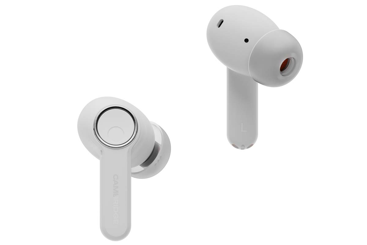 Für den Einsatz unterwegs bringen die In-Ears aktive Geräuschunterdrückung mit. Cambridge beschreibt ein hybrides System aus Feed-Back- und Feed-Forward-Mikrofonen, insgesamt sechs pro Ohrhörer, das Außengeräusche effektiv minimieren und zugleich eine „überragende Sprachverständlichkeit“ beim Telefonieren bieten soll. Die Schutzklasse IPX5 garantiert Spritzwasserschutz, was sportliche Aktivitäten und Regenfälle problemlos möglich machen dürfte.